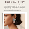 These delicate and whimsical butterfly dangle earrings add a dreamy, feminine beauty to your ensemble with their exquisite blue and pink enamel combination. The delicate enamel colors provide a striking yet calming contrast, and the butterfly motif represents beauty and metamorphosis. With each movement, each wing's delicate design reflects light, producing a soft flutter effect that attracts attention without being overbearing. These earrings are comfy and lightweight, making them appropriate for special occasions as well as daily wear. They go well with everything from casual dresses to festive ensembles because of the hanging design's whimsical appeal. These earrings give the ideal balance of style, color, and charm, making them a lovely option for anybody who like accessories with a youthful, artistic touch and a natural theme.