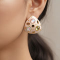 PRAO Earrings Anti-Tarnish Peach Enamel Triangle Crystal Tops