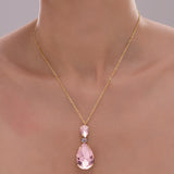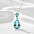 PRAO Anti-Tarnish Aquamarine Drop Crystal Pendant Necklace
