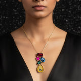 PRAO Anti-Tarnish Multicolor Crystal Flower Pendant Necklace
