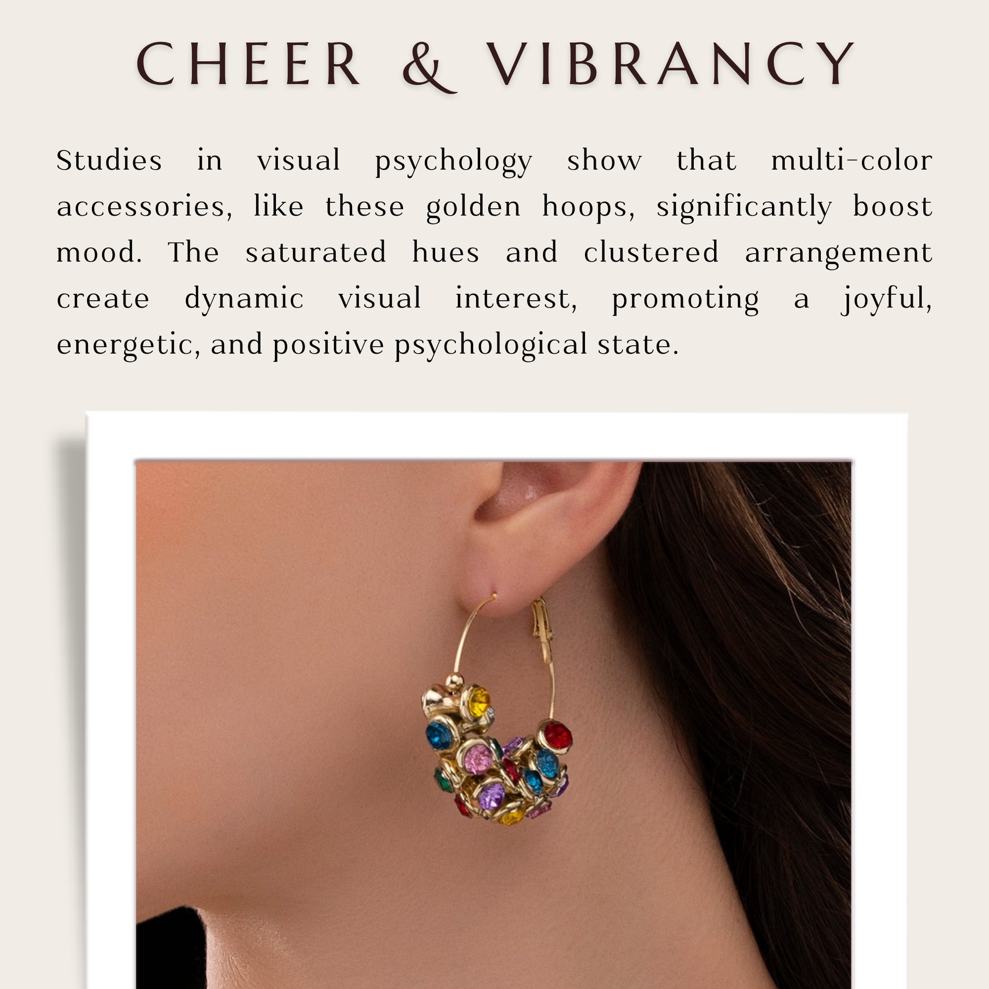 Designed to provide a whimsical yet stylish touch to any ensemble, these colorful hoops are a joyful celebration of color and style. Each studded feature, which is adorned with glossy, multicolored CCB beads, captures the light to produce a vibrant and striking shine. These earrings go well with both fancy and casual ensembles because to their tasteful color combination. They are lightweight and have a smooth texture, providing all-day comfort without sacrificing style. They are easy to wear and create a statement because to their medium size. These hoops are a must-have for everyone who enjoys distinctive, vibrant accessories that exude individuality and charm. They are ideal for bringing some fun to evening wear or for enlivening daily ensembles.