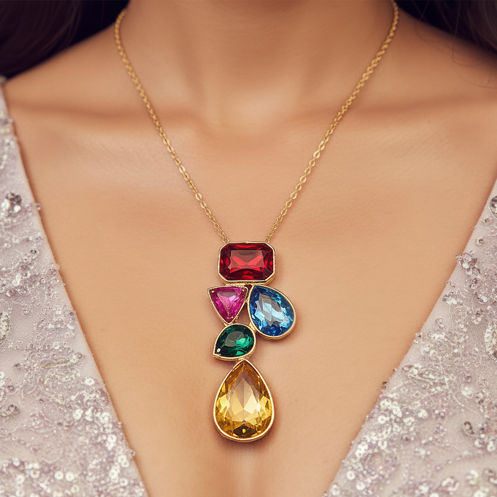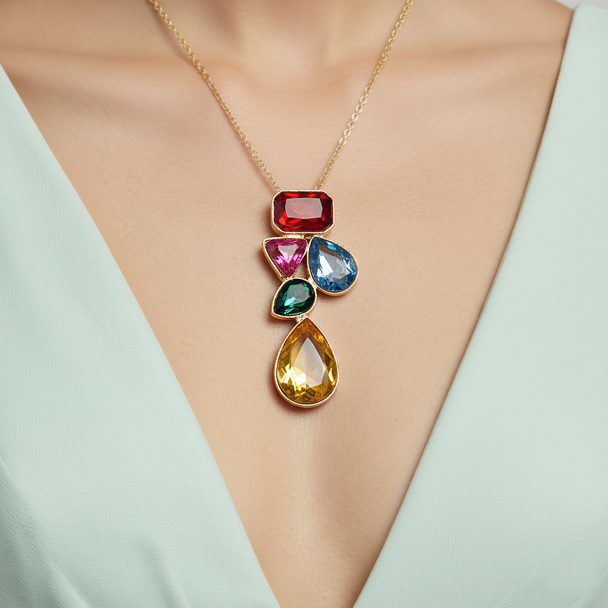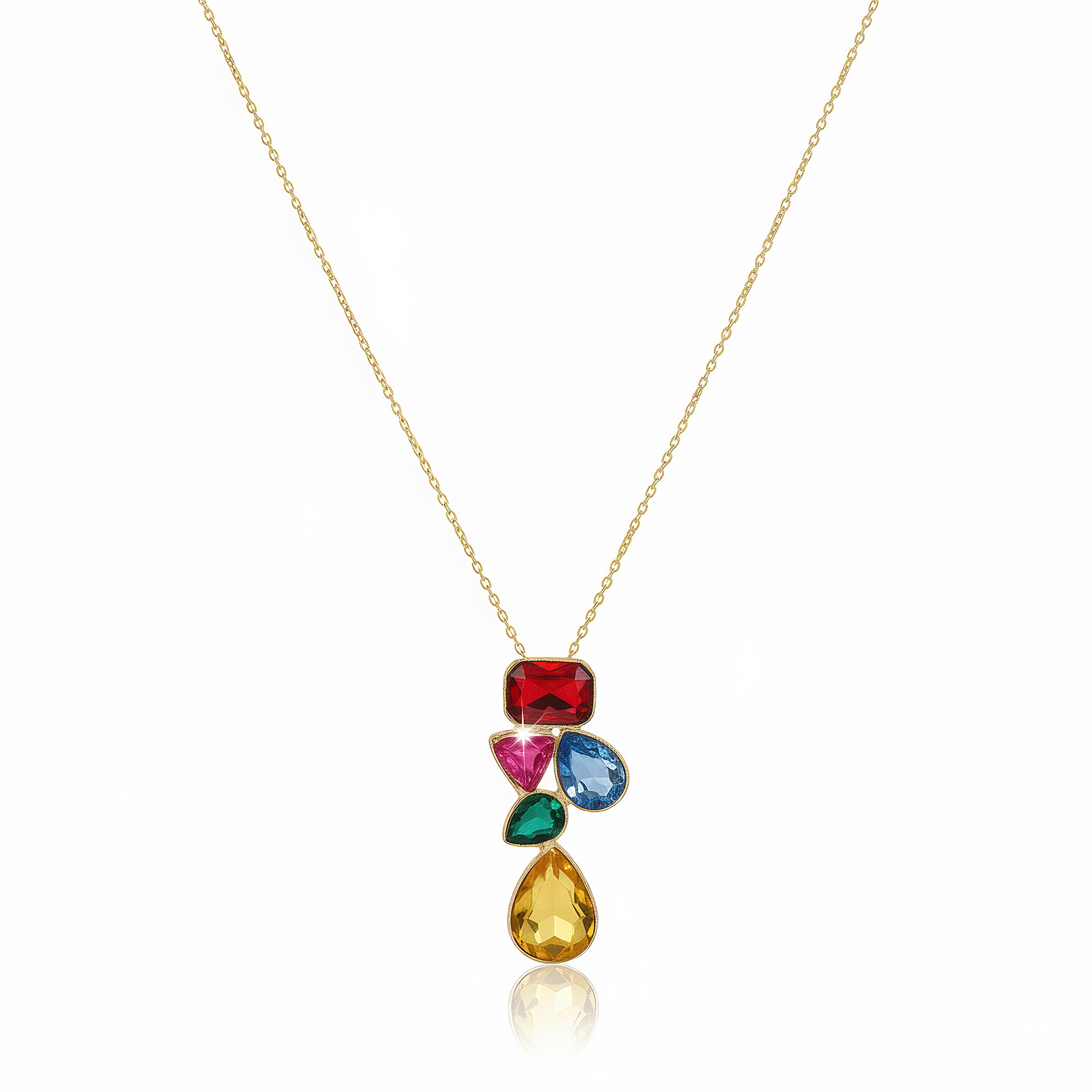 PRAO Anti-Tarnish Multicoloured Crystals Necklace