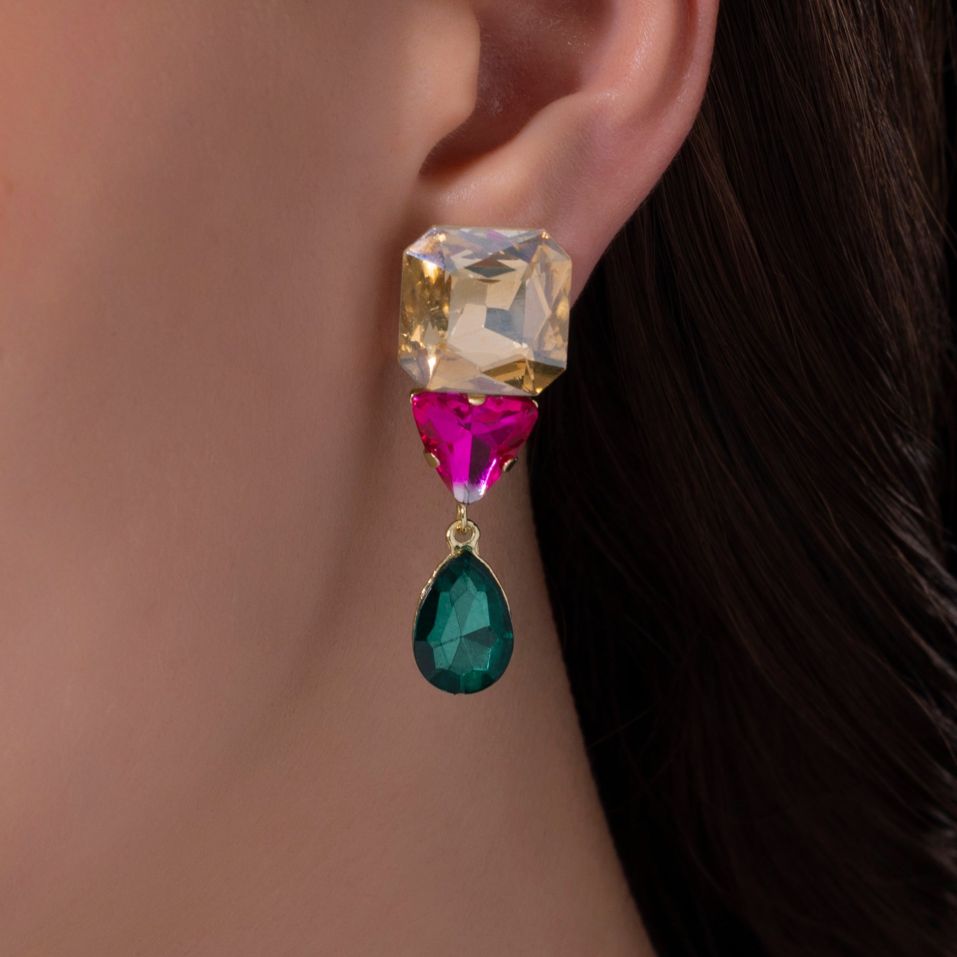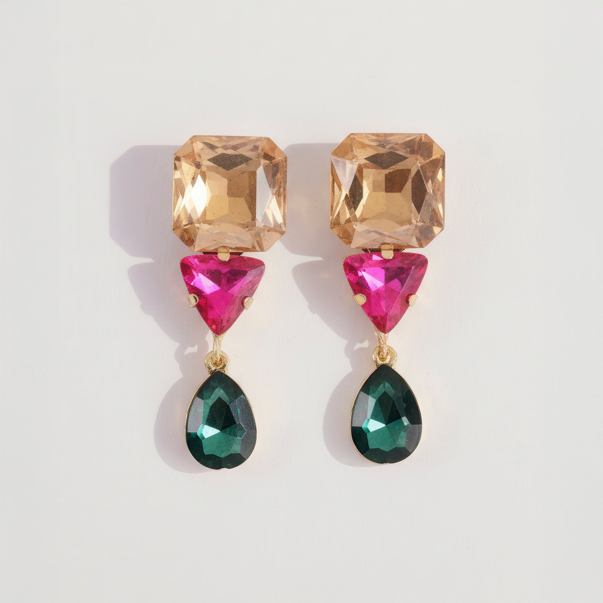 PRAO Anti-Tarnish Tri-Shape Dangle Earrings