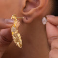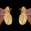 The classic round shape of these dangling earrings is enhanced by a rough casting finish that gives them depth and personality. They have a striking yet elegant appearance thanks to the delicate detailing all over the surface, which produces an enthralling play of light. They are adaptable because to their straightforward form, and their textured design makes them stand out as more than simply simple hoops. They are lightweight, comfortable for prolonged use, and the ideal combination of style and daily convenience. These earrings provide a chic accent that elevates individual style, whether they are worn with more formal or informal clothing. They are the perfect accent for a variety of settings and are perfect for people who value understated statement items. They combine classic appeal with contemporary charm.