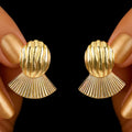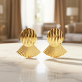 PRAO Anti-Tarnish Oval & Fan Shape Statement Earrings
