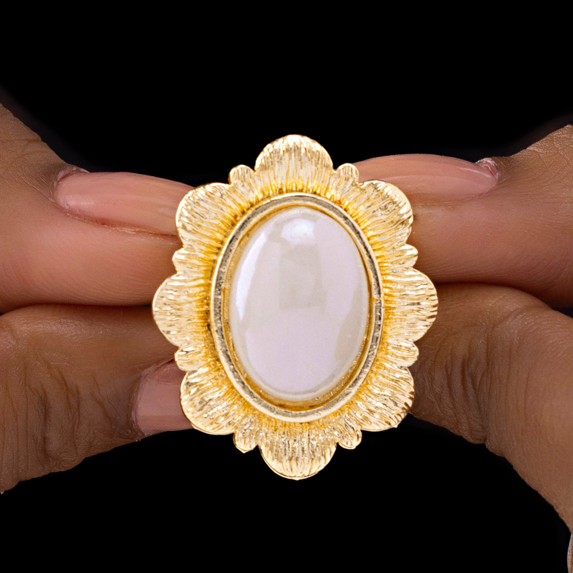 Bold elegance and artistic flair are vividly shown in this round acrylic rainbow stone flower cocktail ring. Each petal of the eye-catching flower-patterned design is made from oval-shaped rainbow acrylic stones that emit brilliant hues, producing a captivating play of light and dimension. It is ideal for events where you want your accessories to make a statement because of its enormous form. It is pleasant to wear while retaining its dramatic appeal because it is lightweight and long-lasting. This ring enhances casual ensembles or provides a pop of color and refinement when worn with formal evening attire. Perfect for people who enjoy glitzy yet whimsical jewelry, it represents originality, self-assurance, and the beauty of uniqueness.