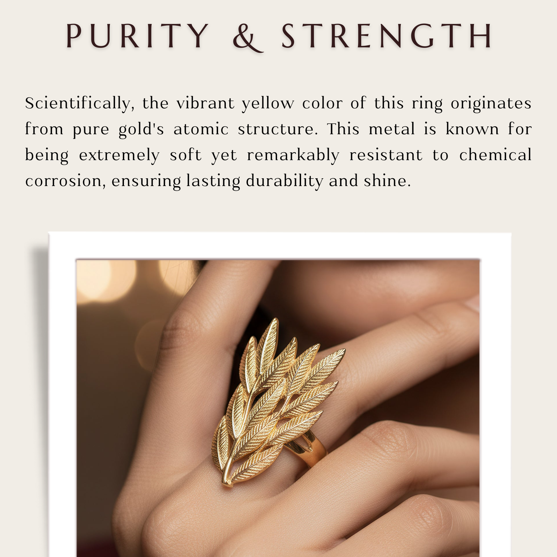 PRAO Anti-Tarnish Golden Leaves Cocktail Ring (Adjustable Size)