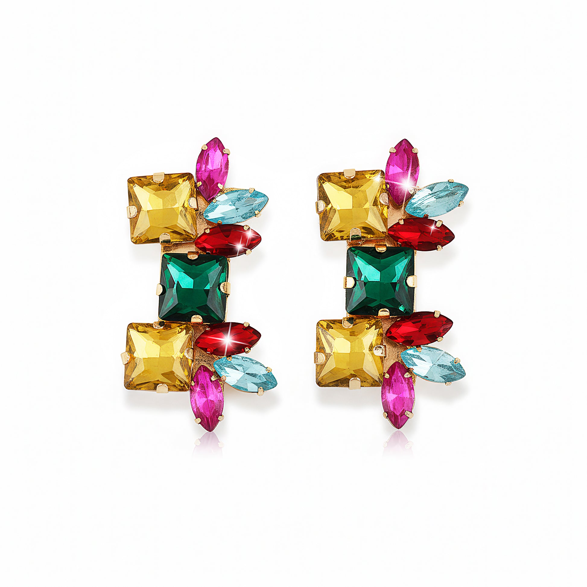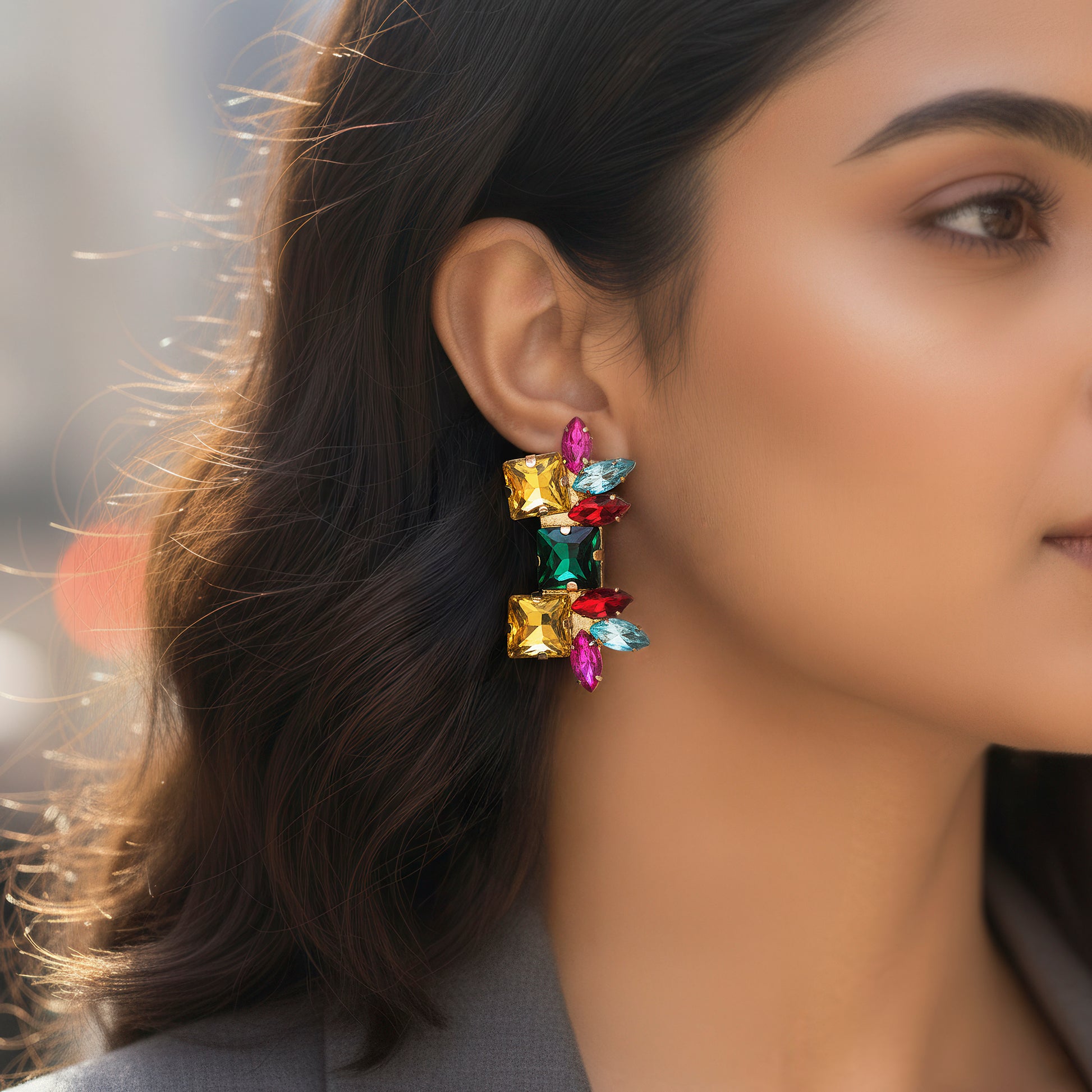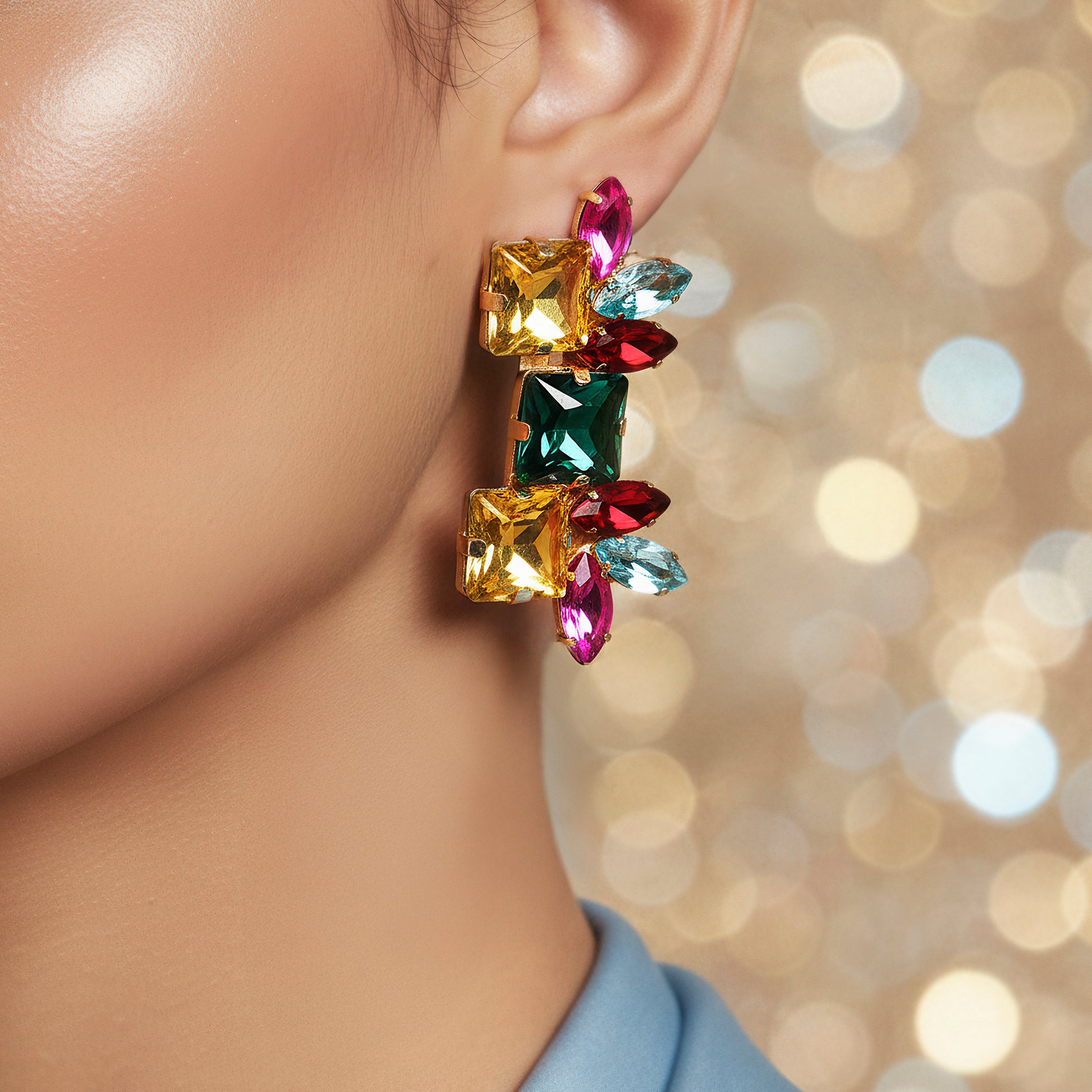 PRAO Anti-Tarnish Multi-Color Linear Statement Earrings