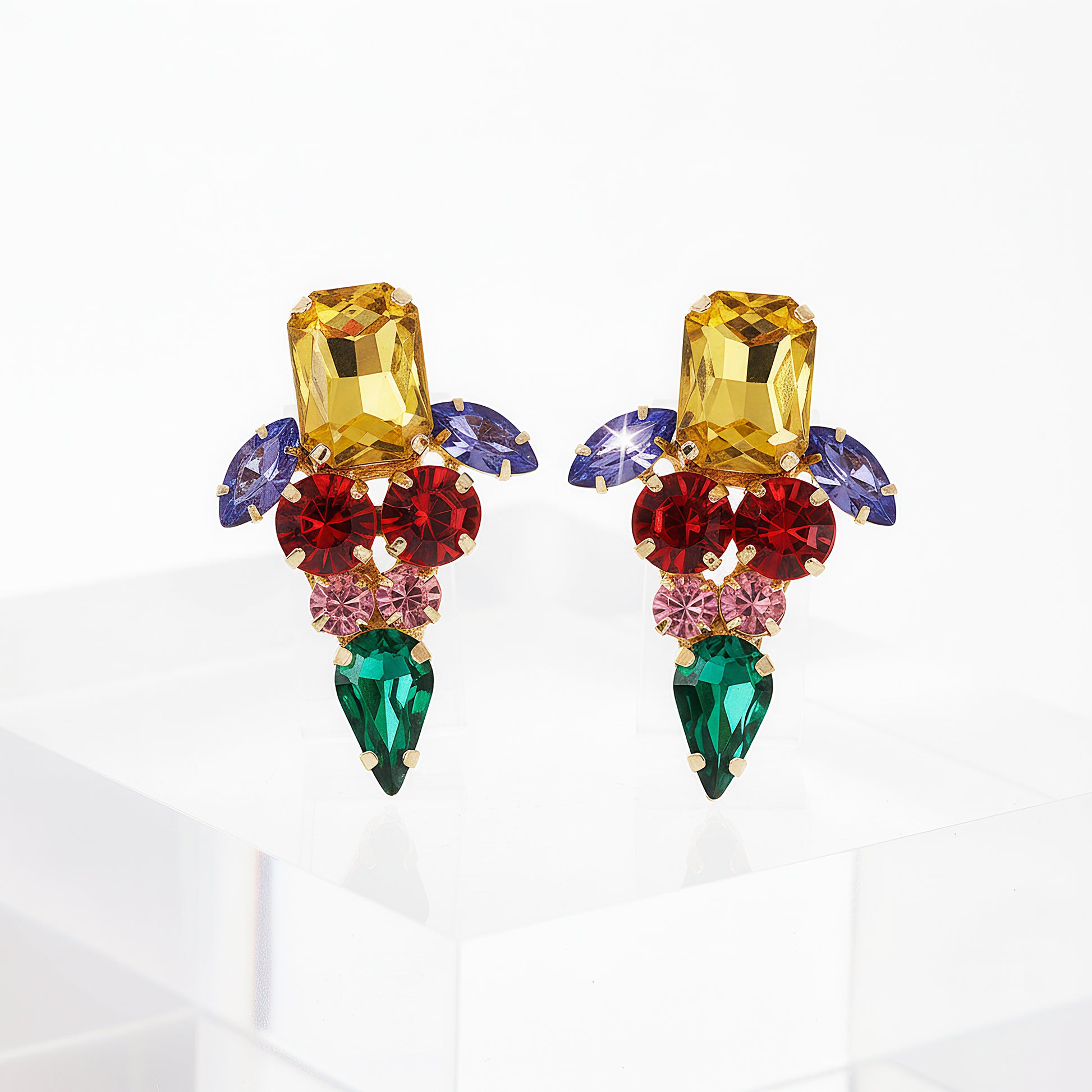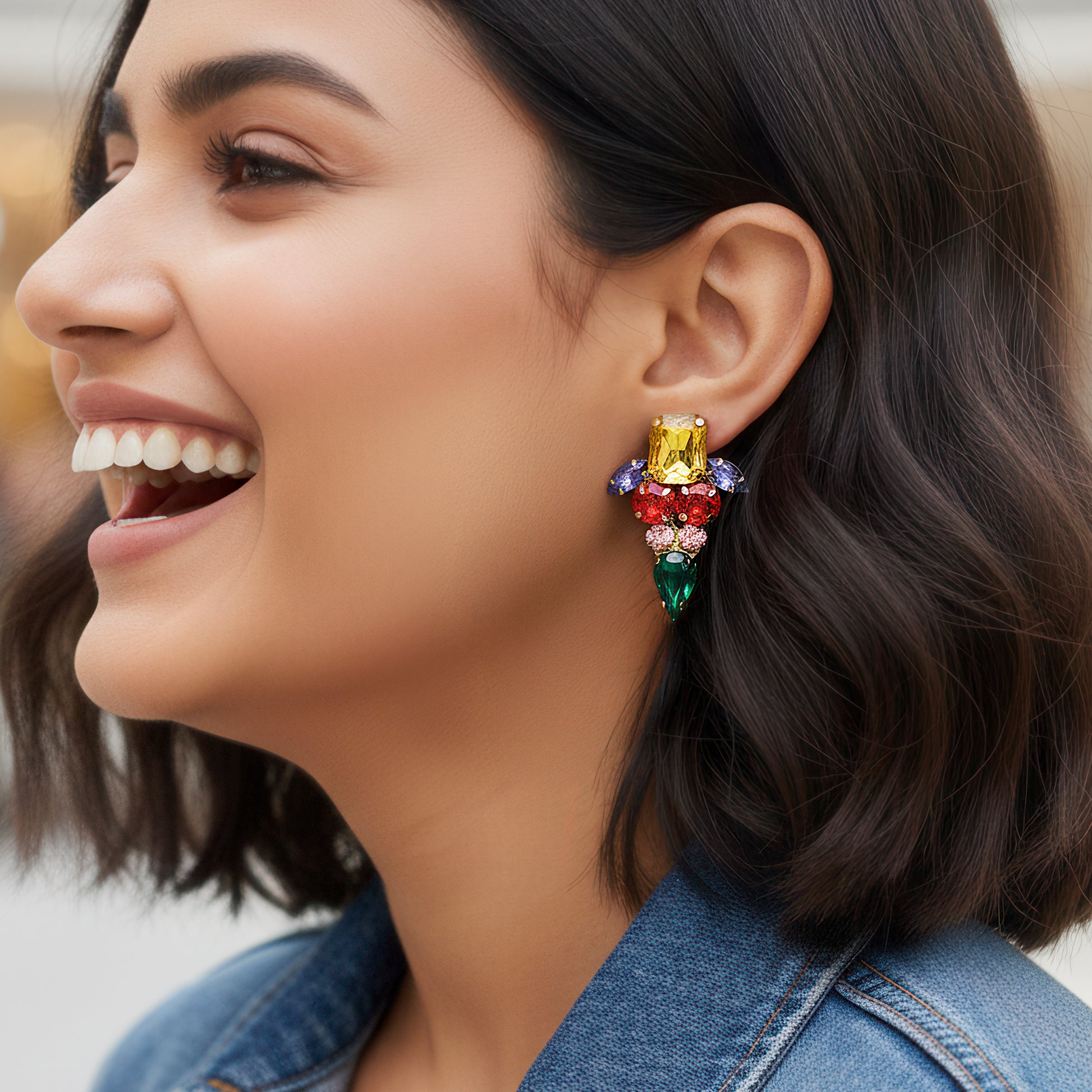 PRAO Anti-Tarnish Multi-Color Triangle Statement Earrings