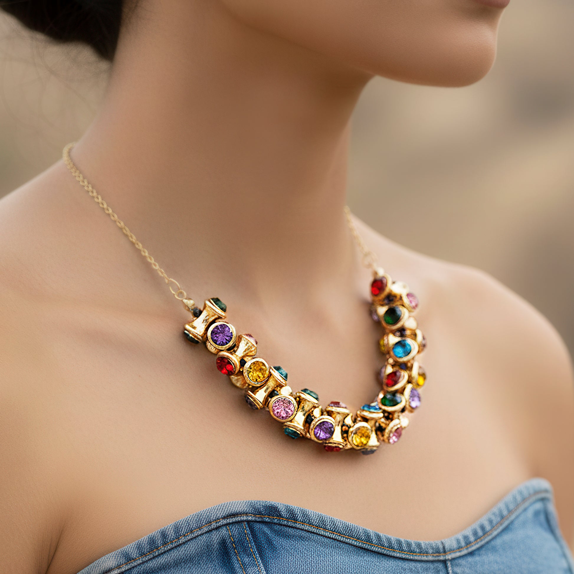 PRAO Anti-Tarnish Two-Headed Multi-Color Necklace