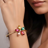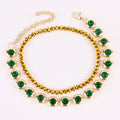 PRAO Anti-Tarnish Pack of 2 Gold Crystal & Emerald Bracelets