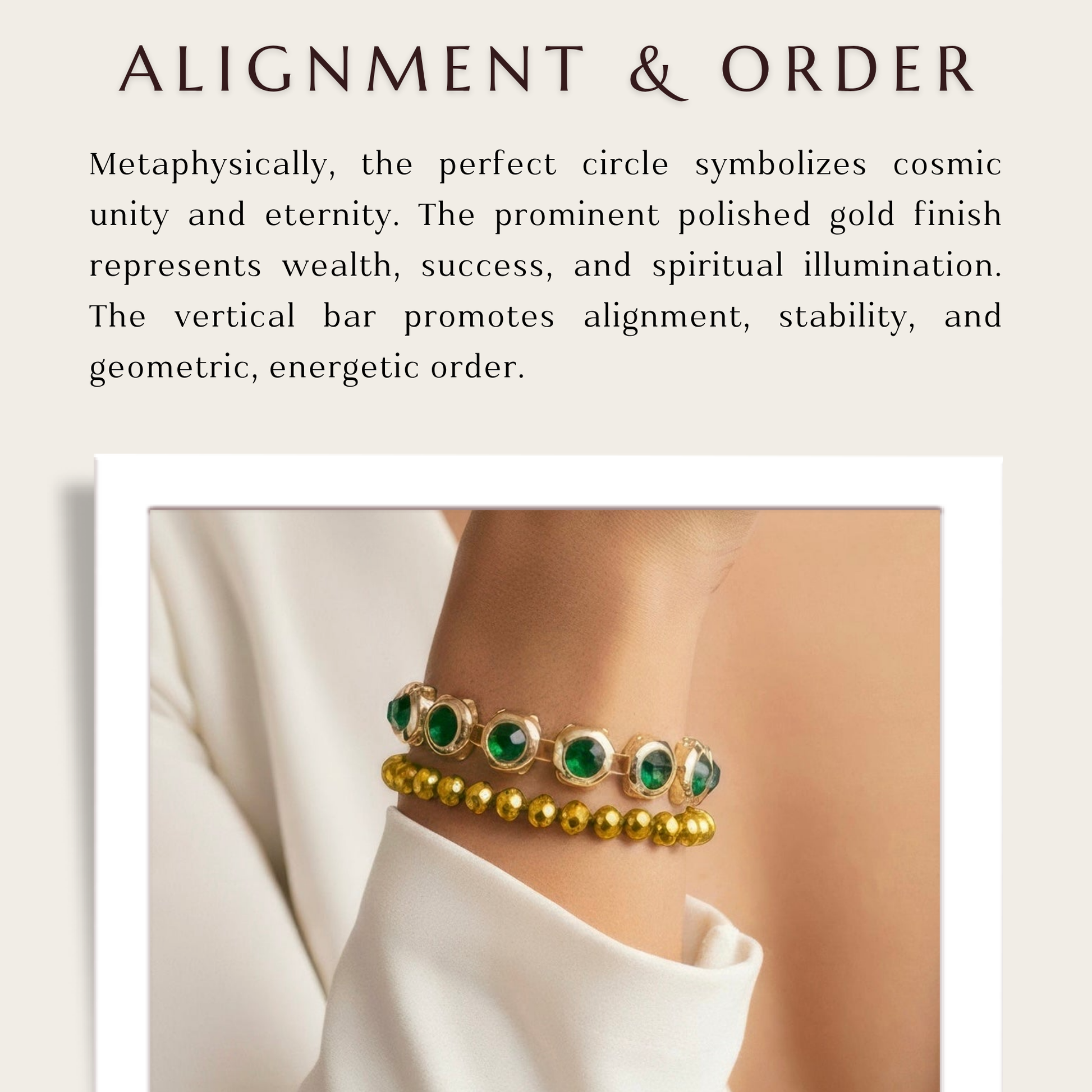 This gorgeous bracelet set is made to add style and charm to any ensemble. Two adaptable parts that go well together or independently are included in the pack. One bracelet has glowing gold crystal beads that elegantly reflect light to produce a sparkling effect with each motion. Rich color contrast and a dash of strong sophistication are added by the second bracelet, which showcases a studded emerald stone. Both styles are comfy, stretchy, and lightweight, making them suitable for all-day wear. These bracelets provide the ideal blend of flair and simplicity, making them excellent for everyday wear or special events. Their classic style makes them a great option for giving or adding a chic, stylish touch to your own jewelry collection.