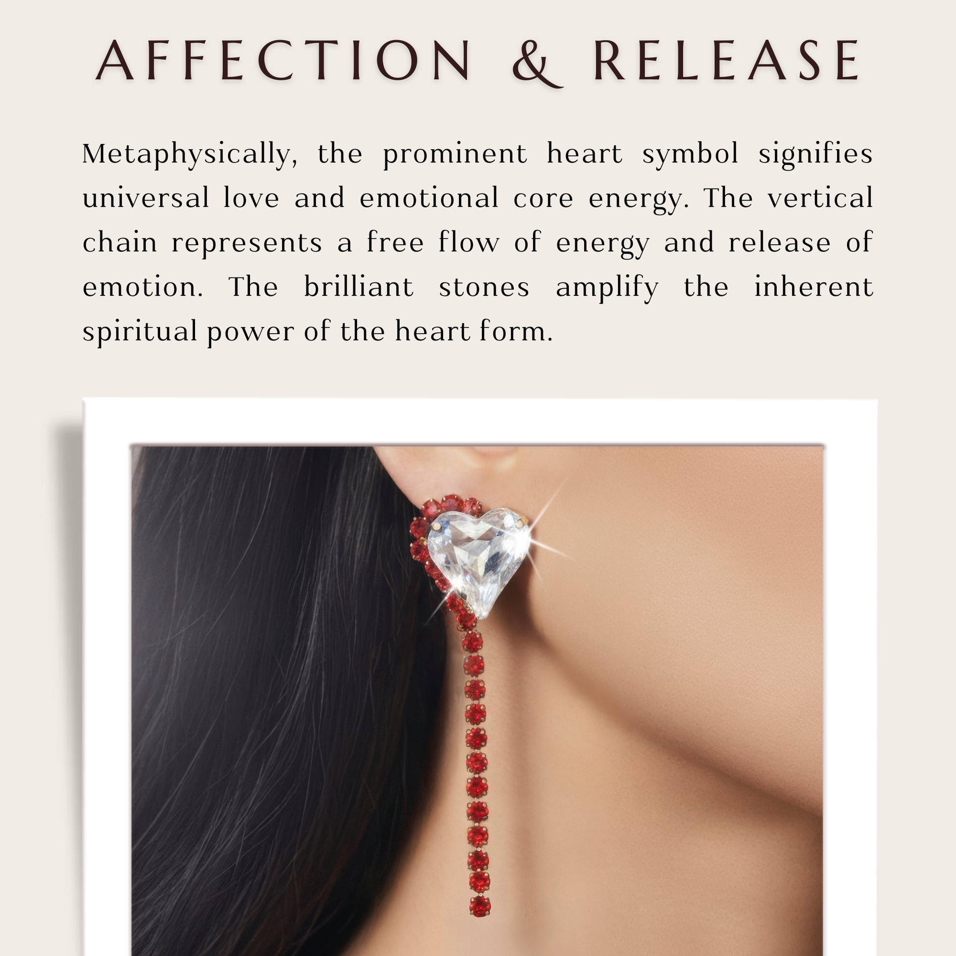 These sophisticated earrings are made to add a little romance and shine to any ensemble. Each item has a delicate red rhinestone chain that leads elegantly to a heart-shaped gem that dangles and exquisitely captures light with each movement. The dangling heart crystal adds a whimsical yet elegant touch, and the vivid red stones provide a dramatic and striking appearance. Whether worn for a casual outing, a romantic evening, or a joyful event, these earrings are comfy and lightweight, making them ideal for extended wear. They are a flexible addition to any jewelry collection because of their classic style, which goes well with both traditional and modern ensembles. An adorable piece of jewelry that radiates shine and accentuates self-assurance, style, and uniqueness.