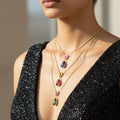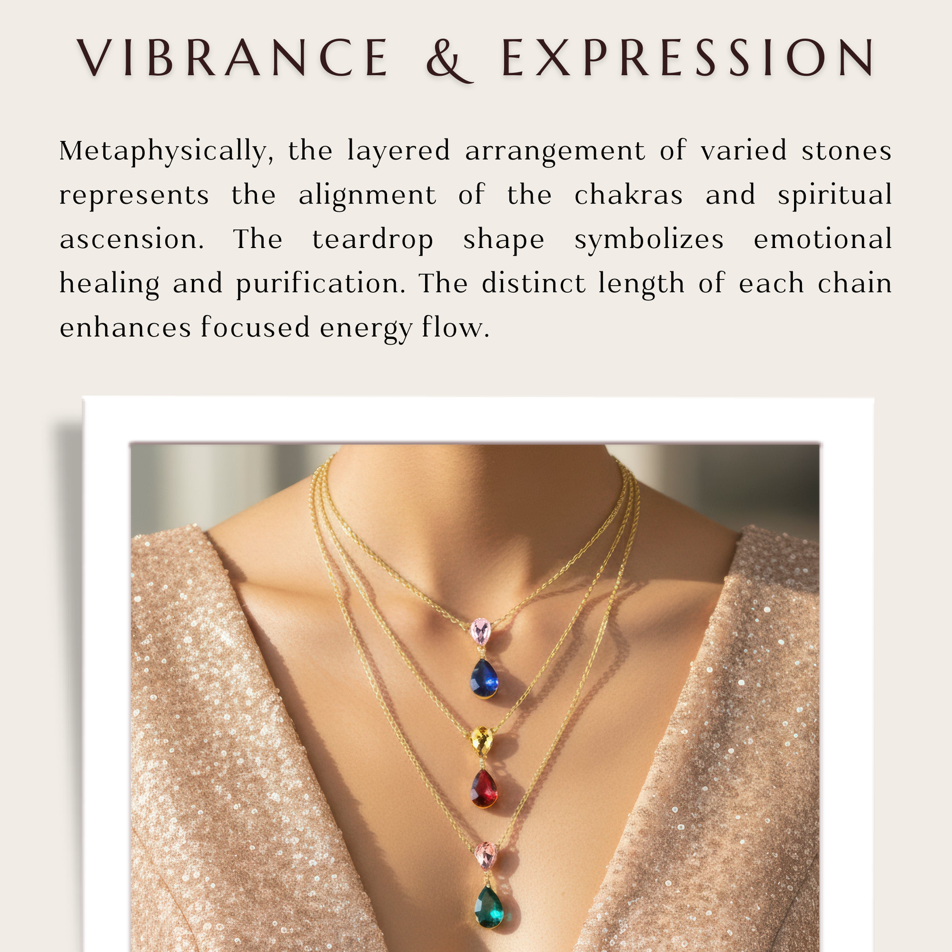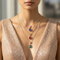 This exquisitely crafted triple-layer chain necklace with multicolored drop pendants will add a pop of color to your ensemble. Each layer is expertly designed to fall at different lengths, producing a lovely, tiered look that elegantly frames the neckline. The design is adaptable enough to go with both formal and casual attire because to the vibrant pop of the multicolored, dazzling drop pendants. It provides uncomplicated styling for daily looks, parties, seasonal events, or evening outings and is lightweight and comfy to wear. Its classic yet contemporary style guarantees that it goes well with a variety of ensembles, from traditional to western dress. Combining sophistication, color, and charm into one accessory, this necklace is ideal as a thoughtful present or as a fashion-forward statement piece.