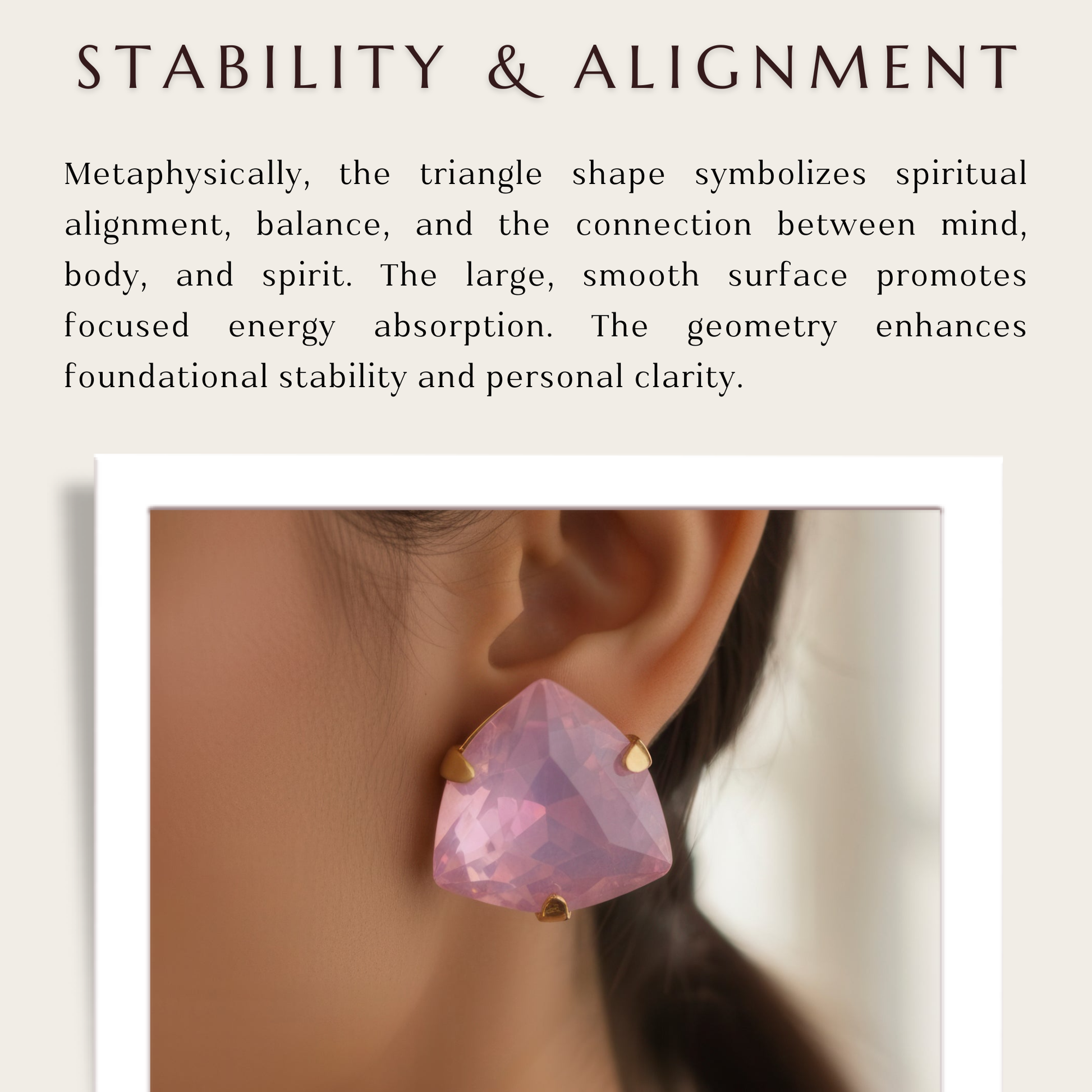 These stud earrings are classic and elegant, adding a touch of refinement to any ensemble. A stunning trillion-cut stone in an alluring opal purple hue that sparkles exquisitely with light reflection is featured in each piece. They differ from conventional studs due to their distinctive triangular design, which adds a contemporary touch without sacrificing their timeless appeal. They offer just the proper amount of sparkle without feeling heavy, and they are comfortable and lightweight enough to wear every day. These studs go well with many different outfits, making them ideal for evening events, informal get-togethers, and office wear alike. They also make a considerate present for a special someone because of their simple yet striking style. These earrings are an essential part of any jewelry collection since they are fashionable, multipurpose, and radiant.