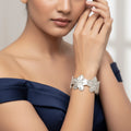 This bracelet's delicate lily flower motif, which represents grace, elegance, and purity, is elegant and classic. The flower design, finished in a sleek silver tone, lends a touch of elegance and charm, making it a piece that can be worn on special occasions as well as for daily wear. It fits well on the wrist, is comfortable and lightweight, and goes well with both formal and informal attire. It adds a touch of understated sophistication to any ensemble, whether it is worn with evening dress, ethnic clothing, or western clothing. Durability is guaranteed by the exquisite craftsmanship, which also maintains the design's modernity and style. This bracelet evokes the grace of nature and adds classic beauty to any jewelry collection, making it ideal as a thoughtful present or as a personal style statement.