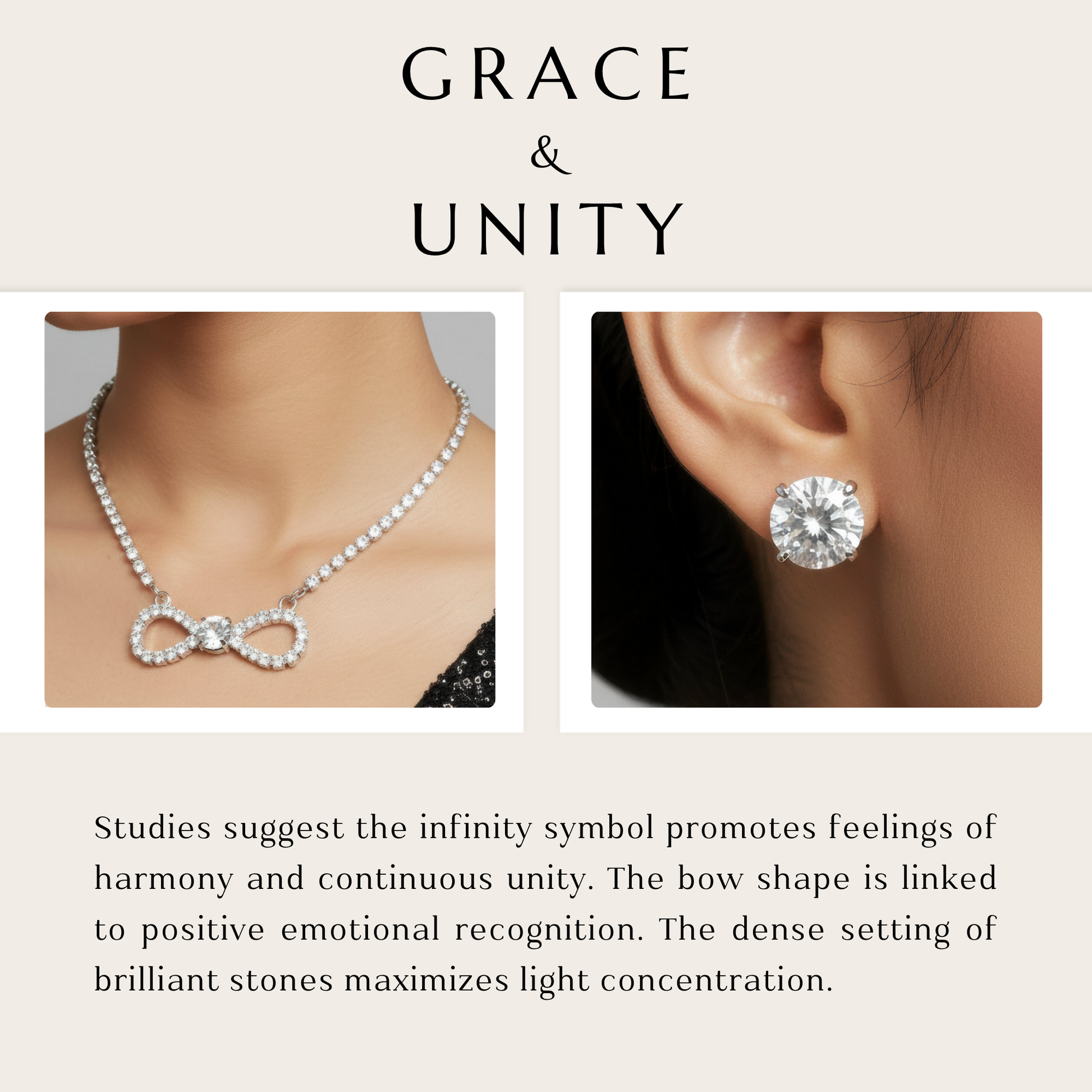 PRAO Anti-Tarnish Infinity Crystal Pendant Necklace Set with Earrings