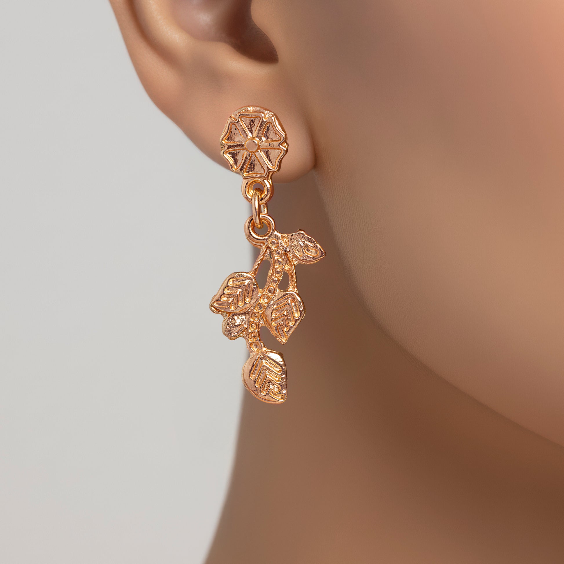 PRAO Anti-Tarnish Rose Gold Leaves Necklace Set With Earrings