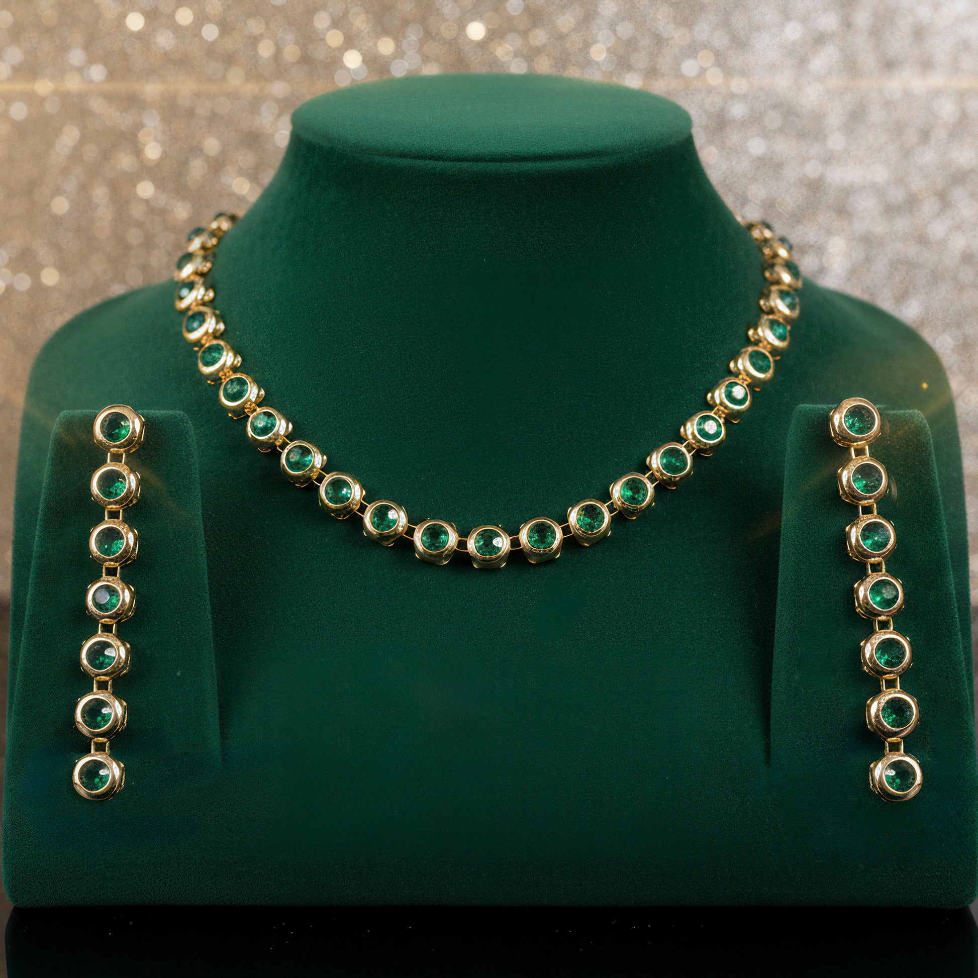PRAO Anti-Tarnish Gold Plated Emerald Green Crystals Necklace Set With Earrings