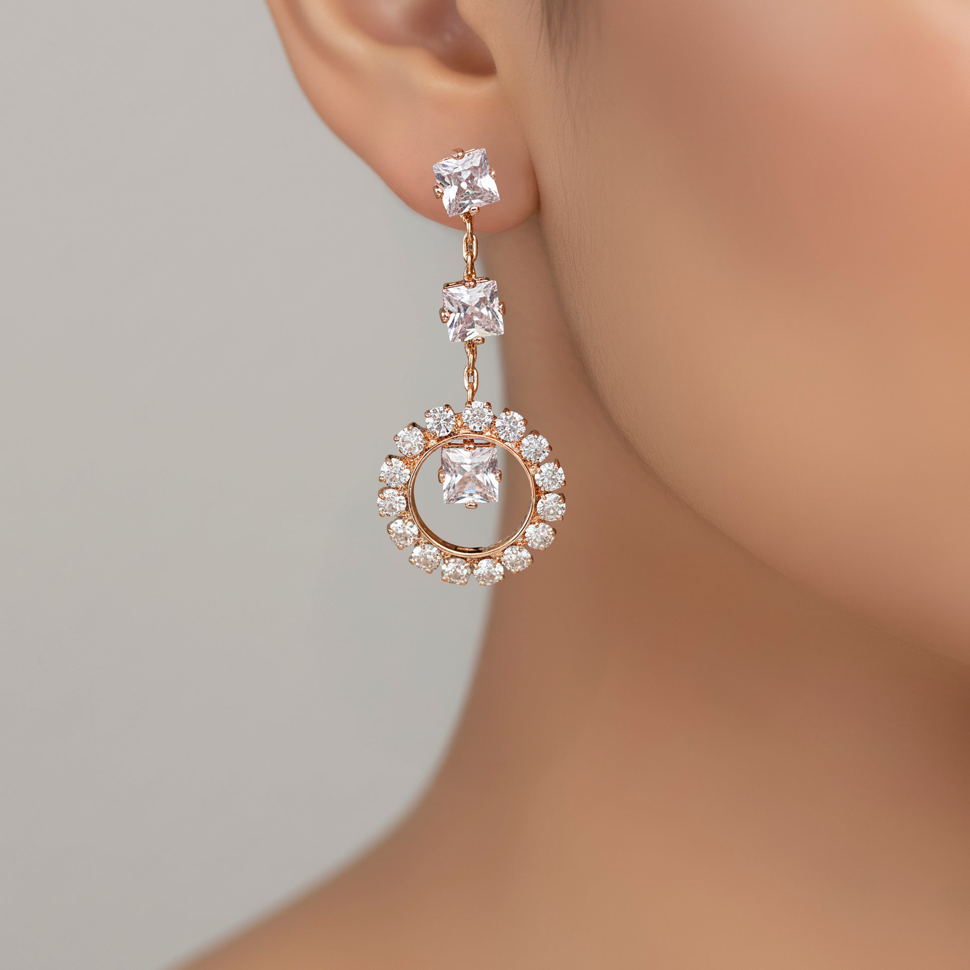PRAO Anti-Tarnish Spacer Rhinestone Chain Circles Necklace Set With Earrings