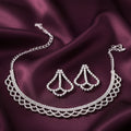 PRAO Anti-Tarnish Curvy Rhinestone Chain Necklace Set With Earrings