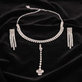 PRAO Anti-Tarnish Rhinestone Strap Statement Necklace Set With Earrings
