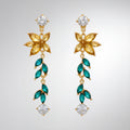 PRAO Anti-Tarnish Flower and Leaf Long Dangle Crystal Earrings