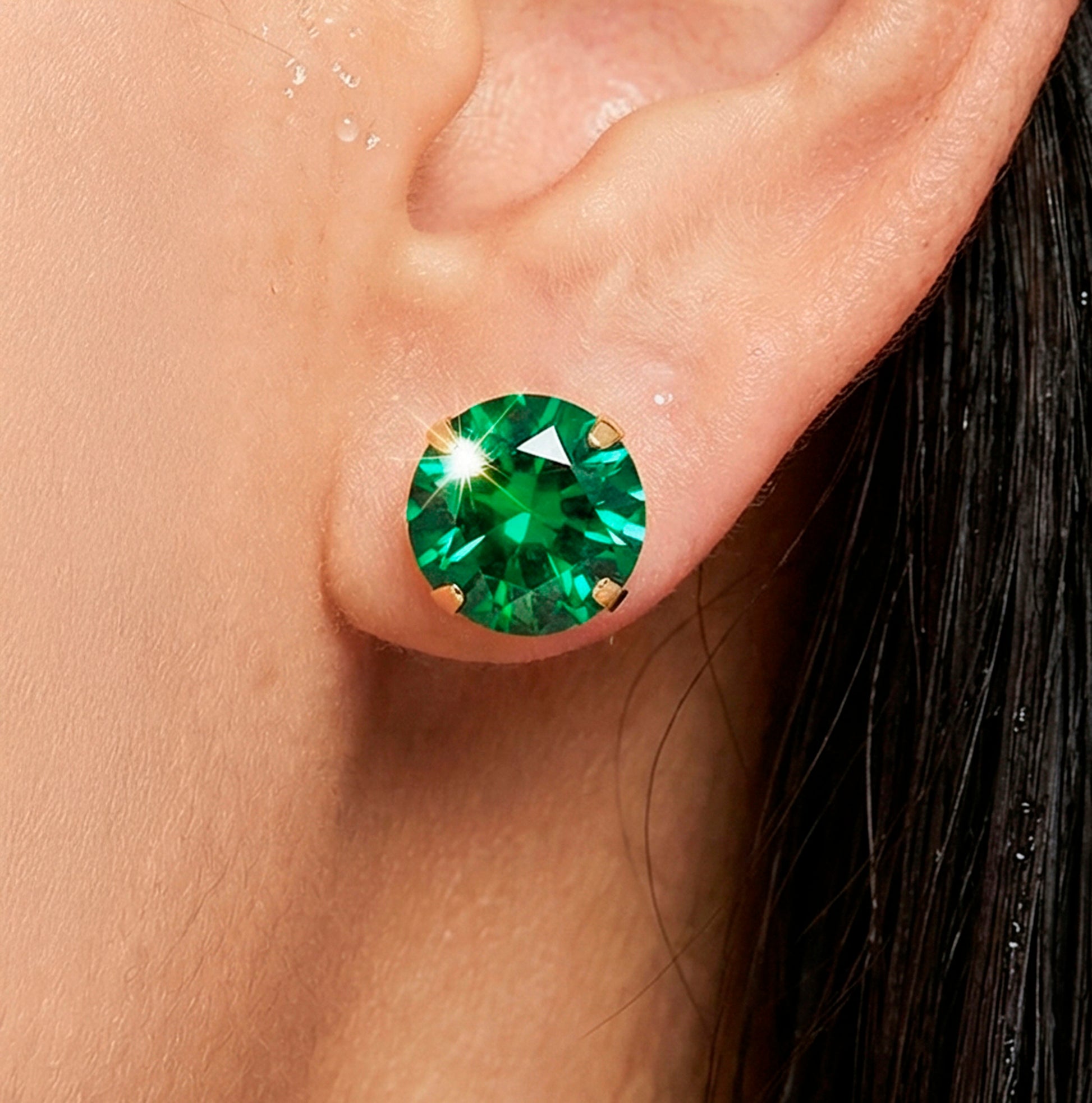 PRAO Necklace Anti-Tarnish Emerald Crystal Set With Earrings
