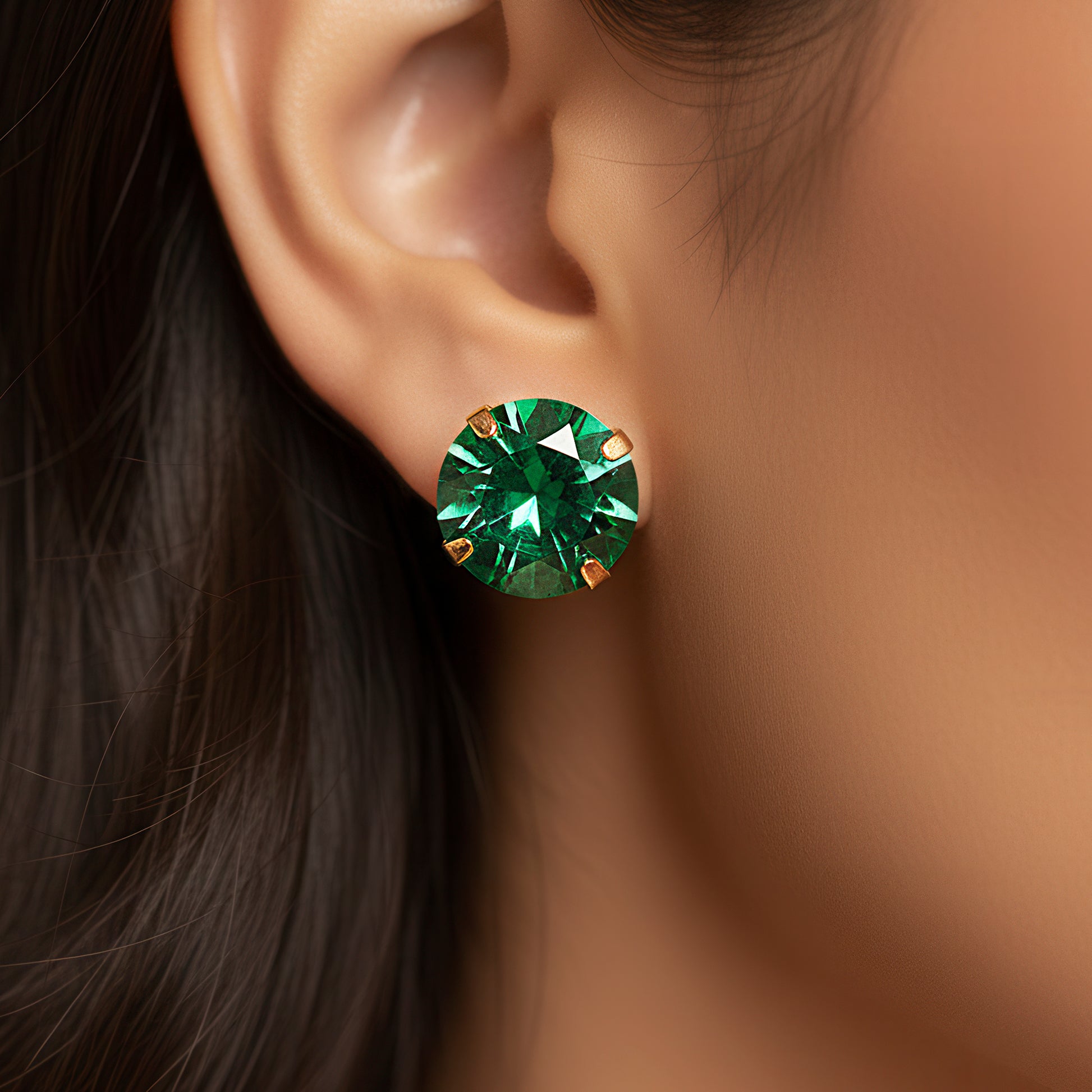 PRAO Anti-Tarnish Emerald Gold Plated Crystal Necklace Set With Earrings