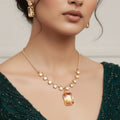 PRAO Anti-Tarnish Gold Plated Premium Crystal Necklace Set With Earrings