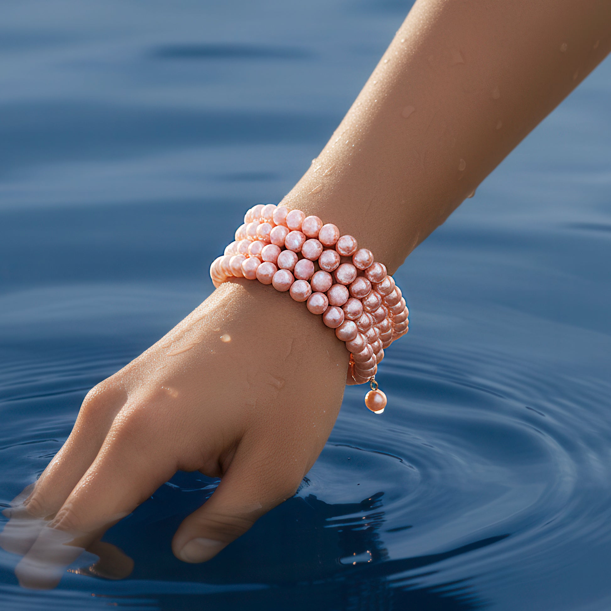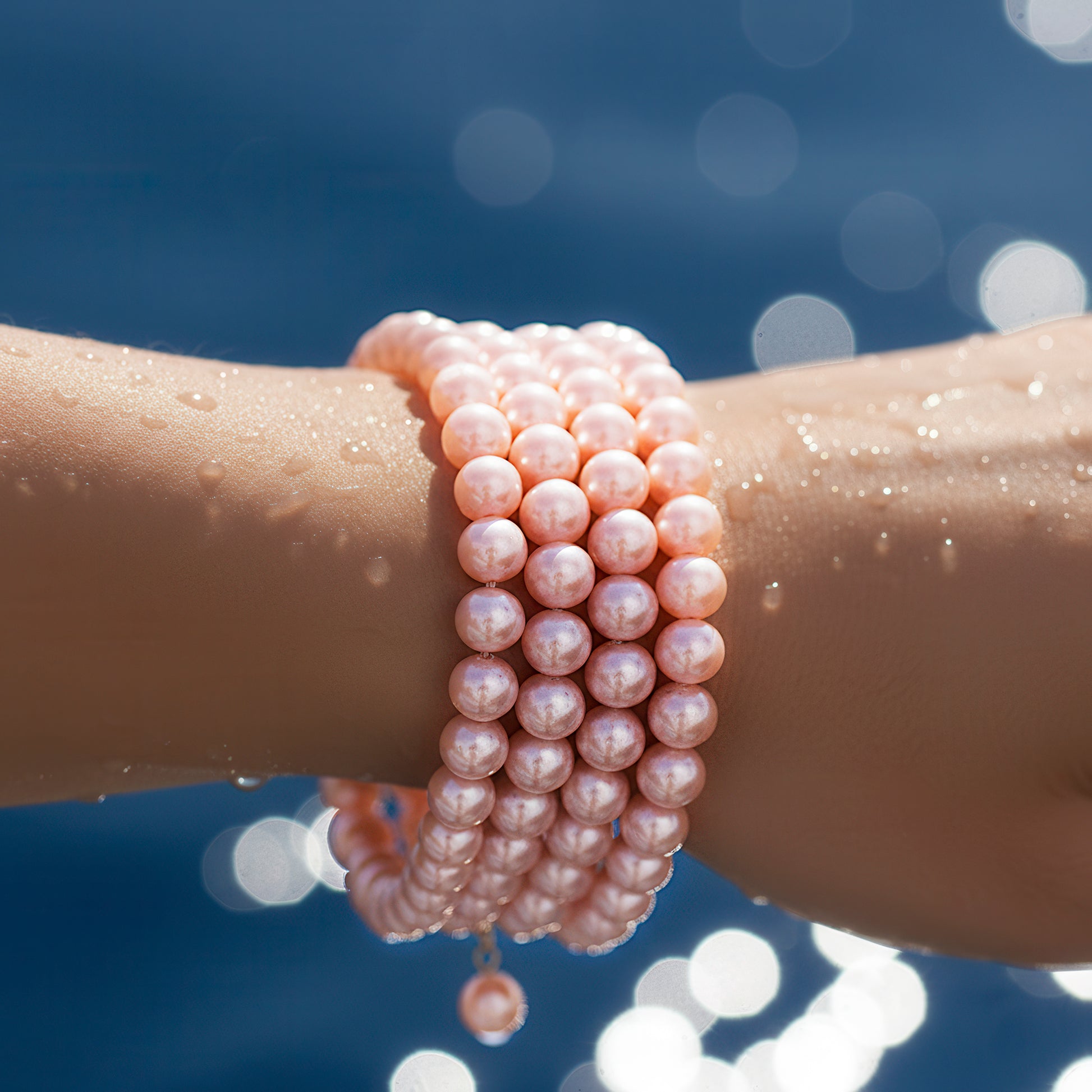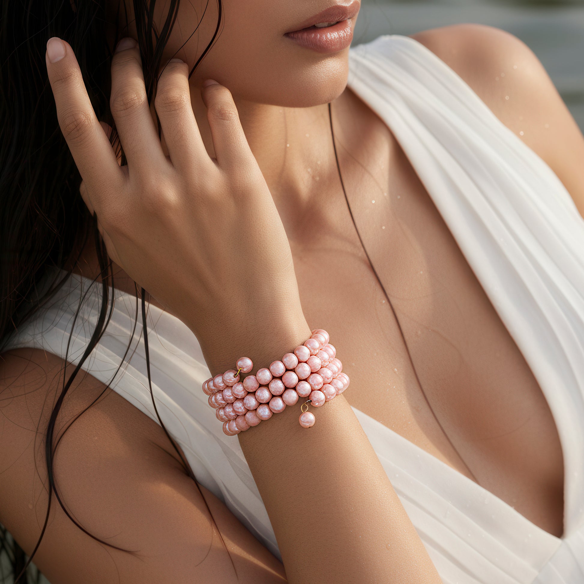 This dainty bracelet's elegant spiral pattern combines modern charm with elegance. A fresh, spring-inspired style that is both feminine and classic is created by the flowing, tiered arrangement of soft rose-pink pearls. The pearls' flawless sheen reflects light brilliantly, so the piece may be worn to evening events as well as throughout the day. Its adaptable spiral design guarantees a snug fit and effortlessly and stylishly wraps around the wrist. This bracelet is ideal for adding a modest splash of color and goes well with formal attire, celebratory ensembles, and casual wear. It offers everyday versatility and evokes a sense of elegance and romance, making it a thoughtful present option for that particular someone.