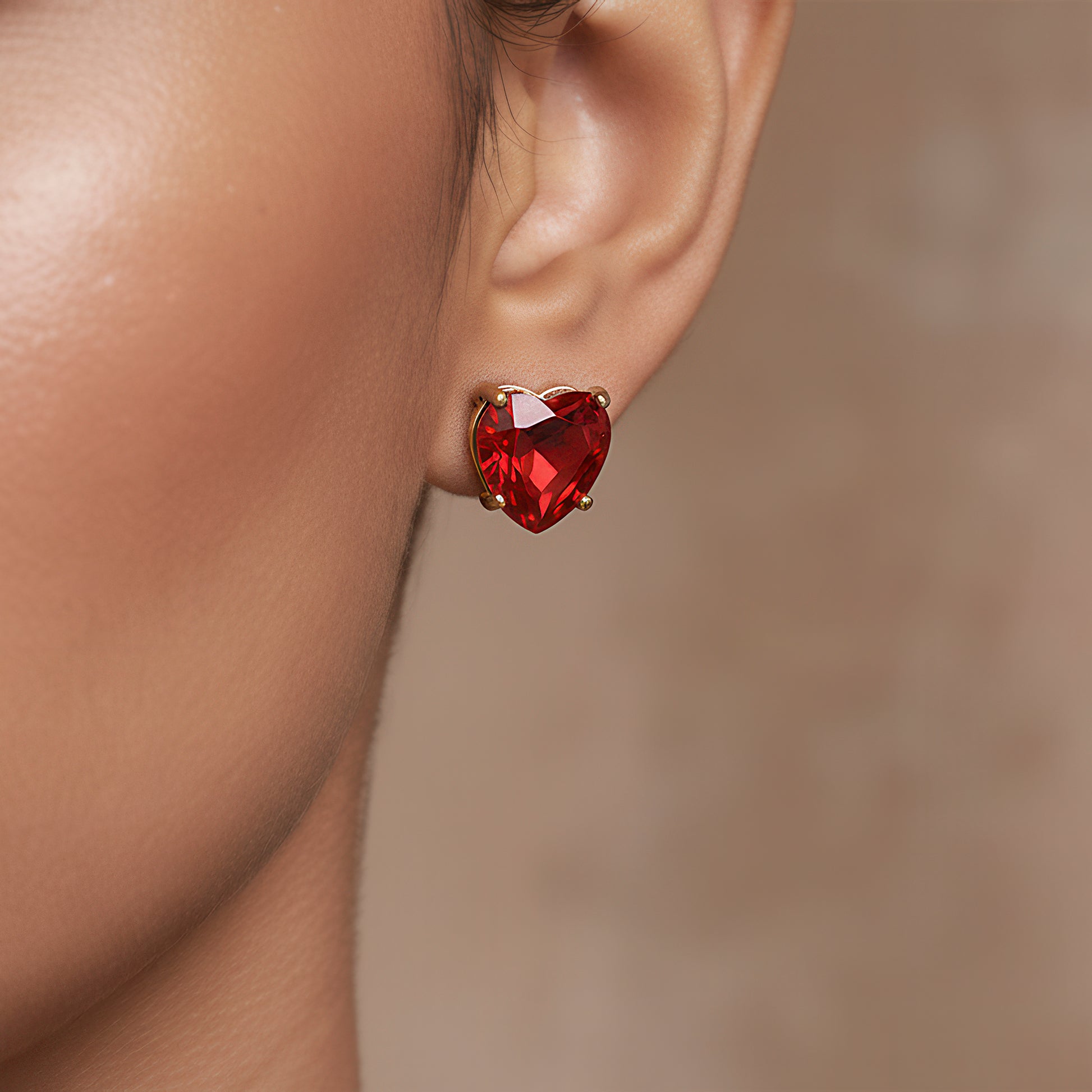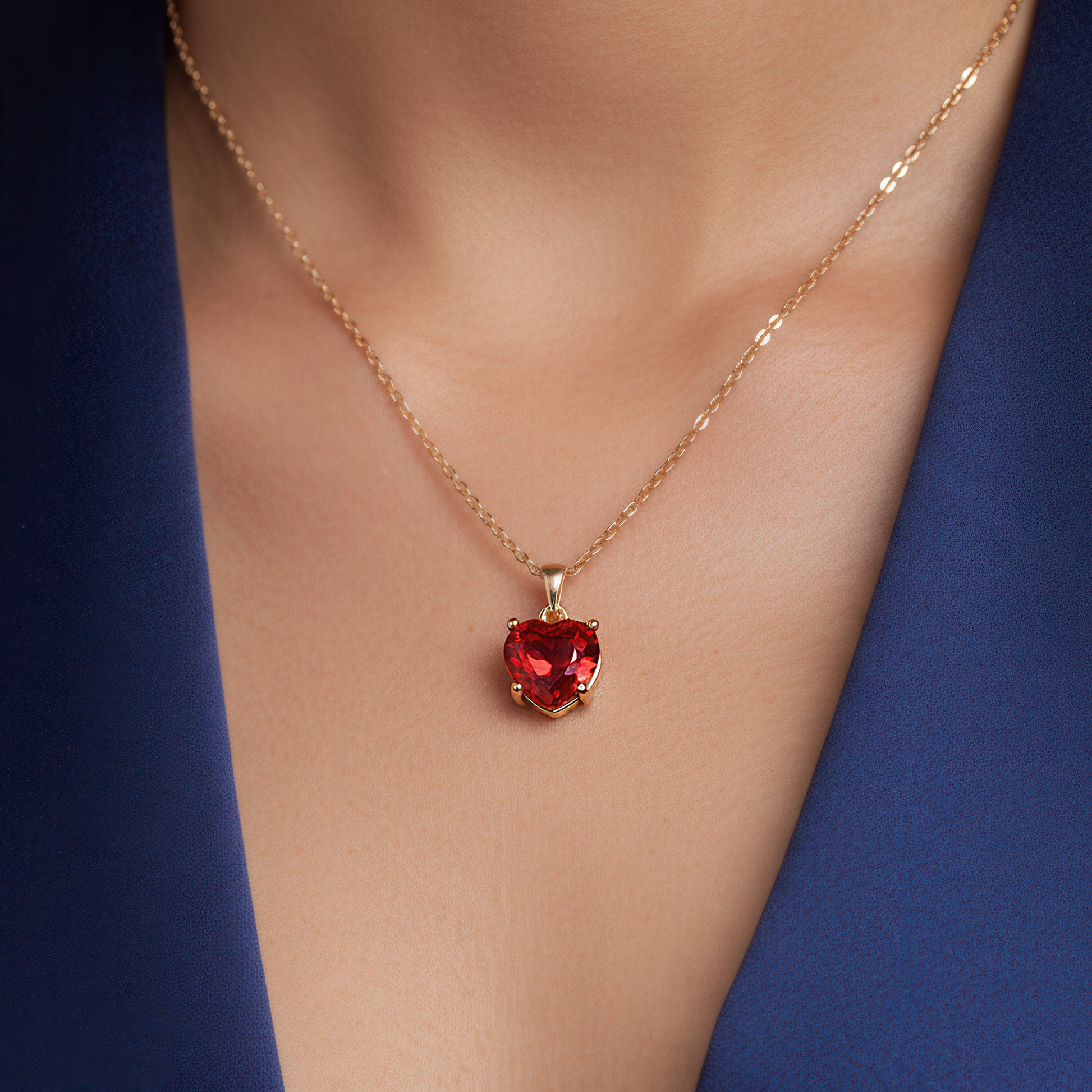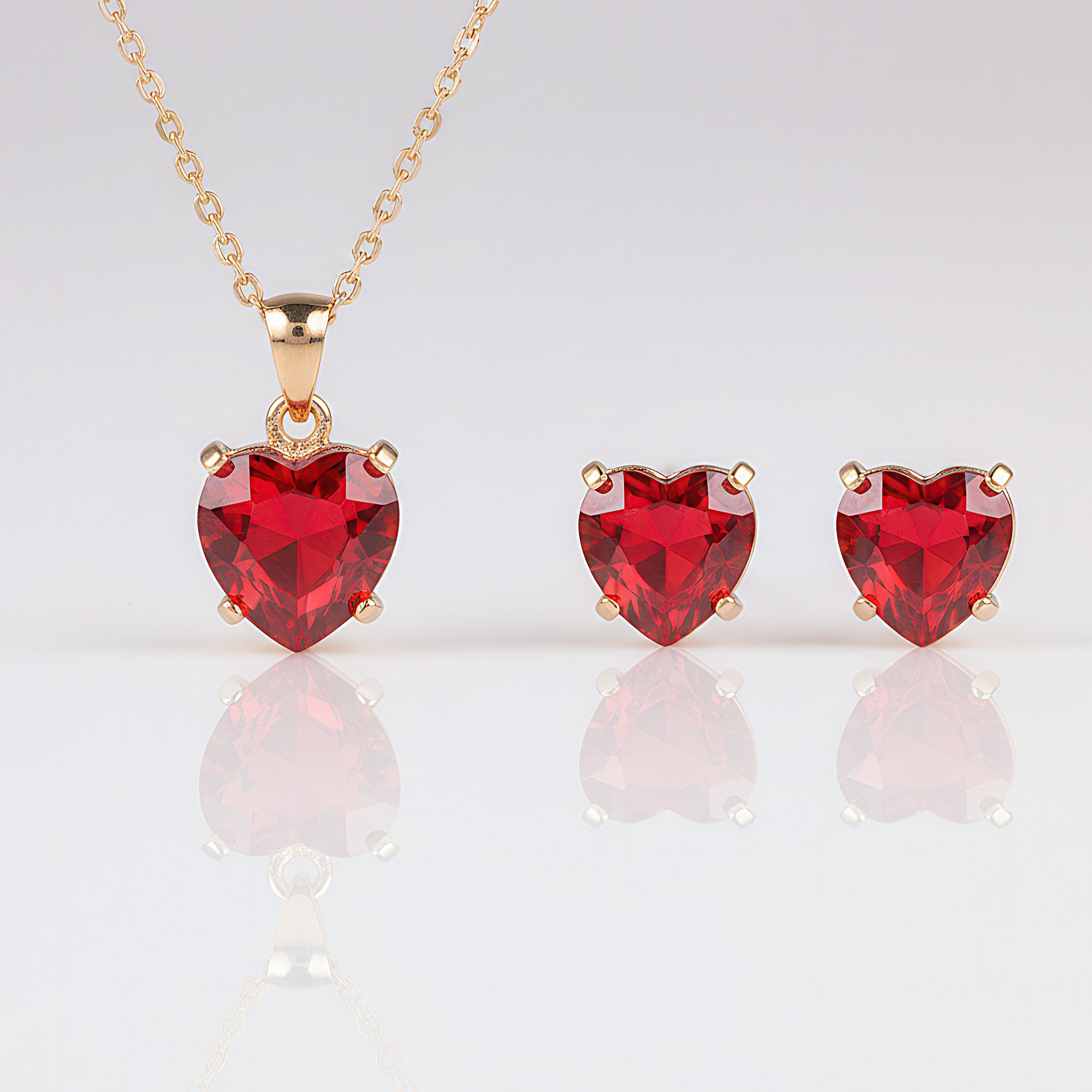 The exquisite red crystal heart in this captivating pendant set is elegantly framed in a warm rose gold finish, striking the ideal mix between love and style. The matching earrings contribute to the set's overall charm, and the dazzling red gemstone catches the light nicely, adding a little glitter to your neckline. Each piece is exquisitely crafted and exudes modern femininity and sophistication. It easily blends in with both traditional and western attire and is soft and lightweight, making it perfect for both special occasions and everyday wear. The red crystal represents confidence and love, while the rose gold tone provides an opulent touch. This combination adds classic beauty to any occasion and is ideal as a considerate present or fashionable personal adornment.