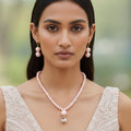 PRAO Rose Pink Pearl & Crystal Necklace Set with Earrings
