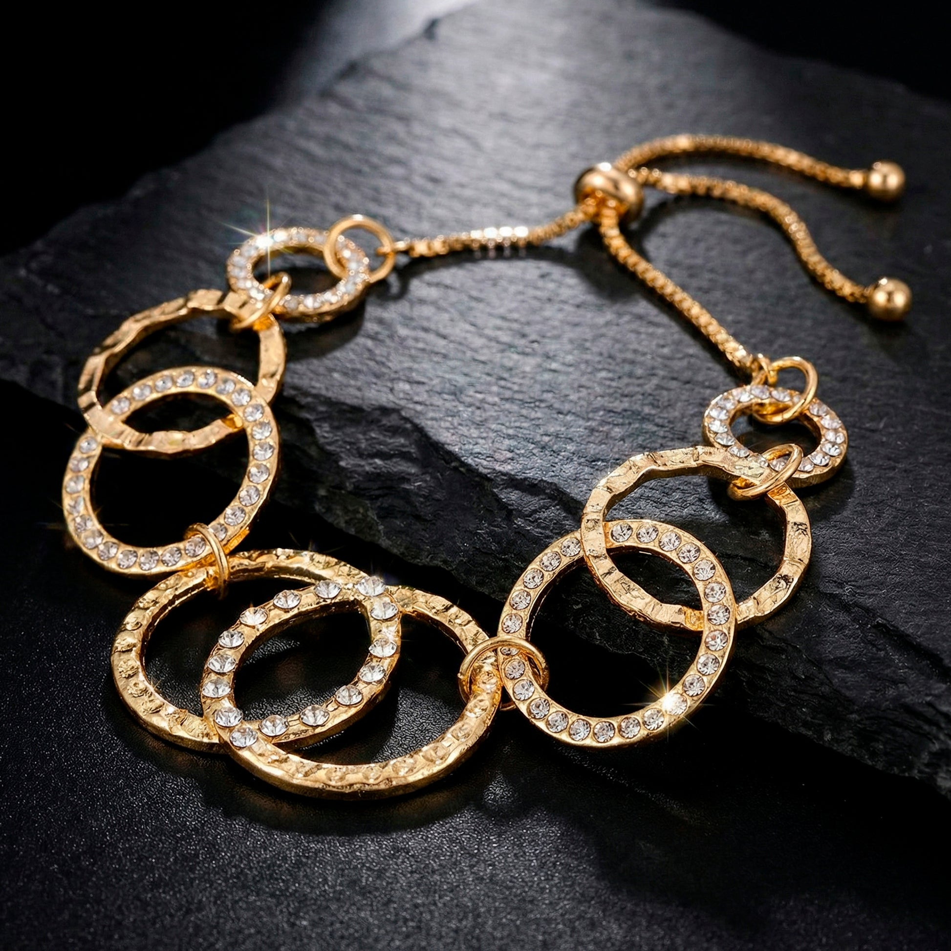 PRAO Bracelet Anti-Tarnish Inter-Linked Circles with AD (Adjustable Size)