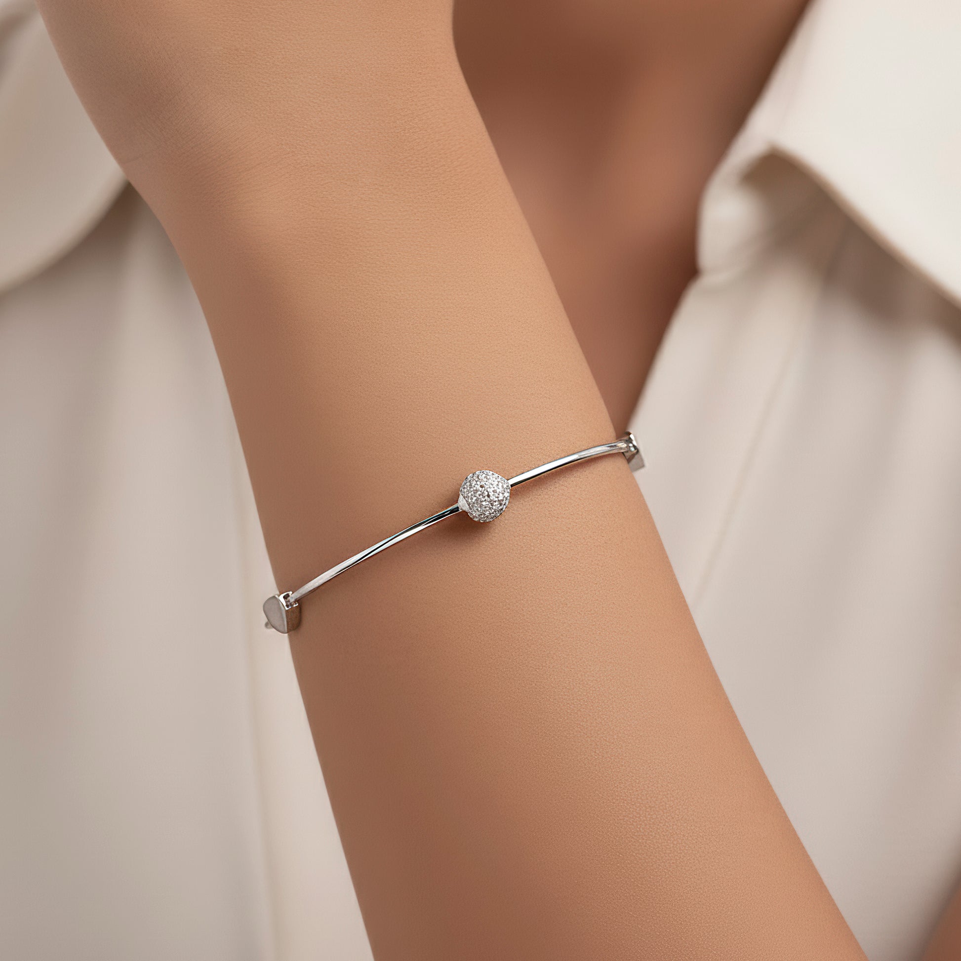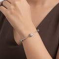 This exquisite bracelet combines classic charm with contemporary style. It has a sleek solid heart charm that gives a touch of sophistication and passion, and delicate crystal balls that sparkle exquisitely with every movement. The piece has a humorous and ethnic appeal because to the subtle, lyrical melody created by tiny ghungroo elements. This bracelet, which has a sophisticated silver tone, is ideal for both informal and celebratory settings. All wrist sizes can be comfortably fitted thanks to its adjustable construction. It lends elegance and sparkle to any ensemble, whether it is worn alone for a modest statement or layered with other pieces. A classic that embodies artistry, passion, and elegance in every little detail.