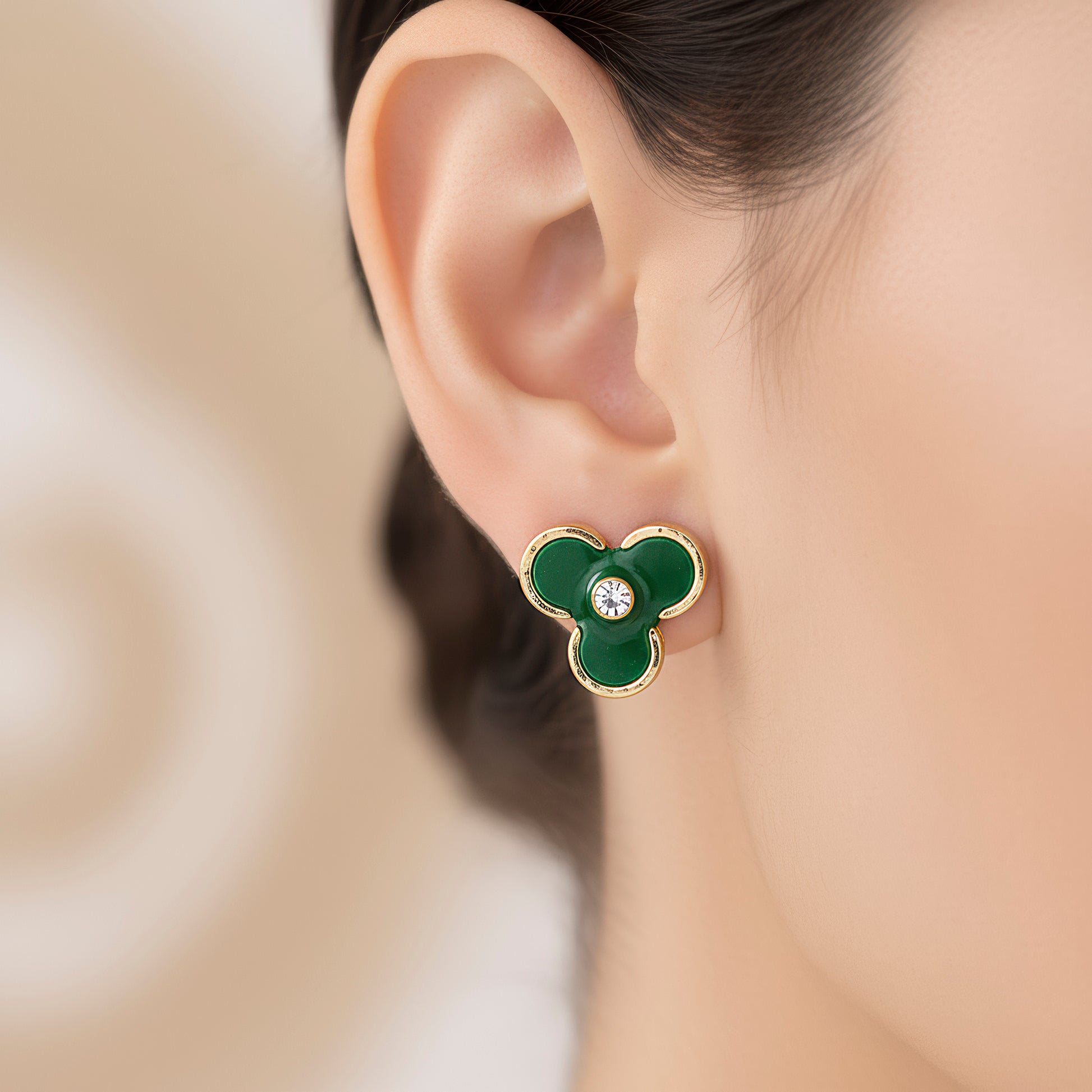 This eye-catching necklace set features a distinctive club-shaped design with sparkling crystals and exquisite enamel details for an opulent finish. The sparkling stones give each movement a stunning brilliance, and the vivid enamel gives a contemporary, creative touch. The necklace is ideal for both festive occasions and evening outings since it lays nicely on the neckline. The set is completed with matching earrings that have the same chic style for a unified and elegant appearance. This piece skillfully blends refinement with modern flair while remaining lightweight and striking. It is a must-have addition to your jewelry collection since it adds a glamorous and charming touch to your style, whether it is worn with western or ethnic clothing.