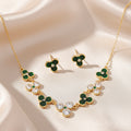 PRAO Anti-Tarnish Clubs Enamel & Crystal Necklace Set With Earrings