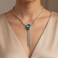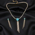 PRAO Anti-Tarnish Drop Crystal Rhinestone Tassel Hanging Necklace Set With Earrings