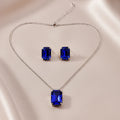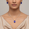 PRAO Anti-Tarnish Blue Sapphire Crystal Pendant Set With Earrings