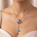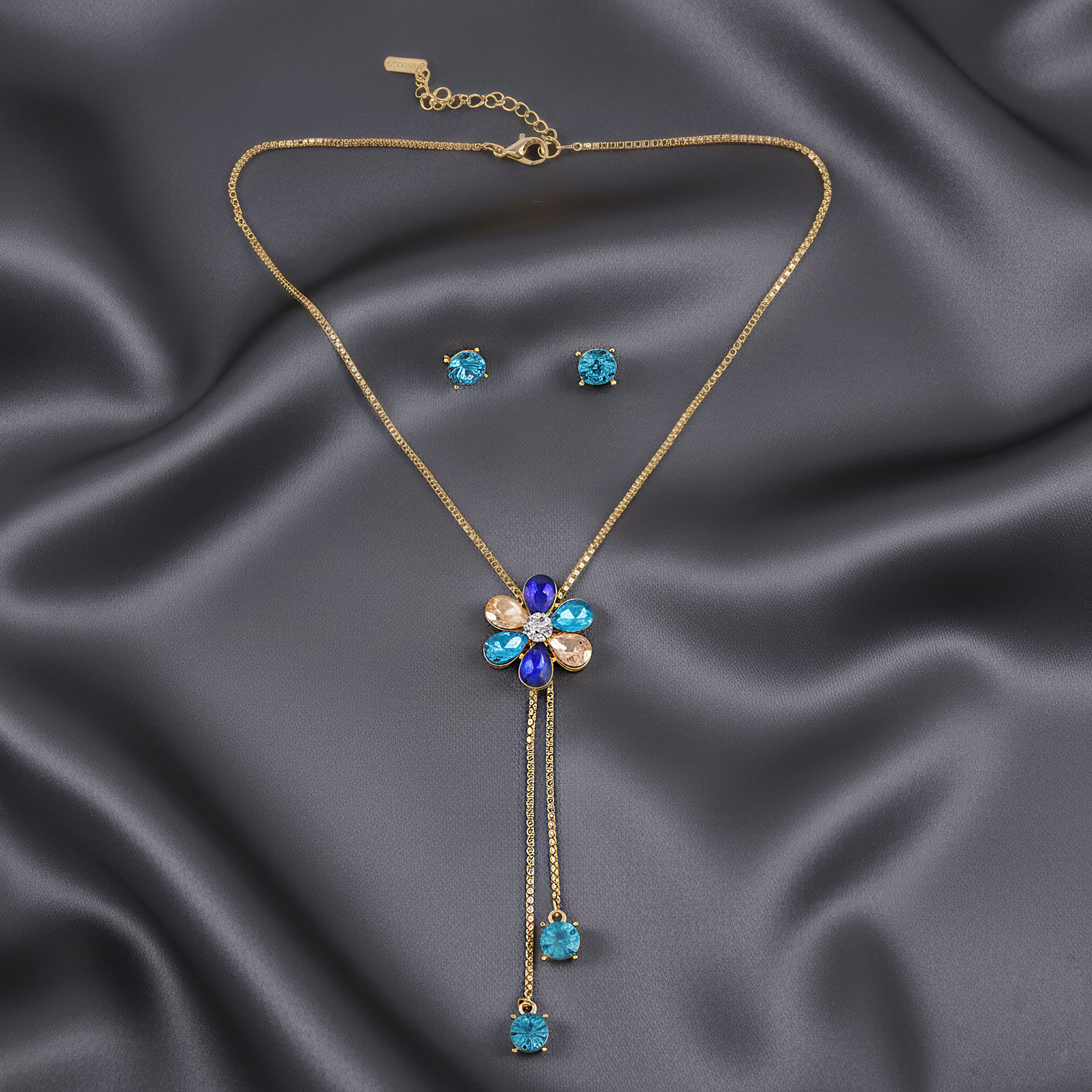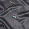 PRAO Necklace Anti-Tarnish Crystal Flower Lariat Set With Earrings