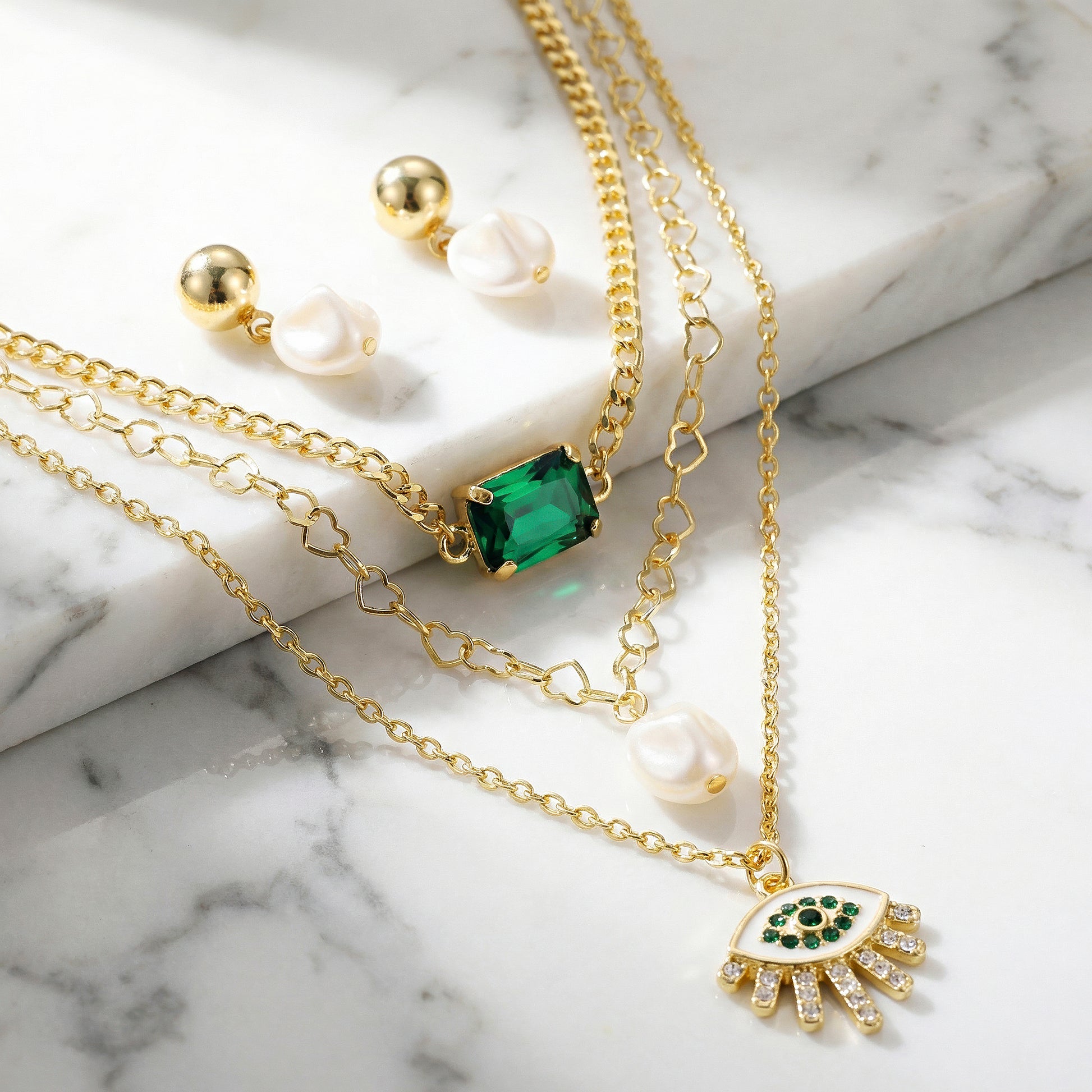 PRAO Necklace Waterproof Layers Set with Earrings
