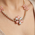 PRAO Necklace Anti-Tarnish Floral Rhinestone Chain Set With Earrings