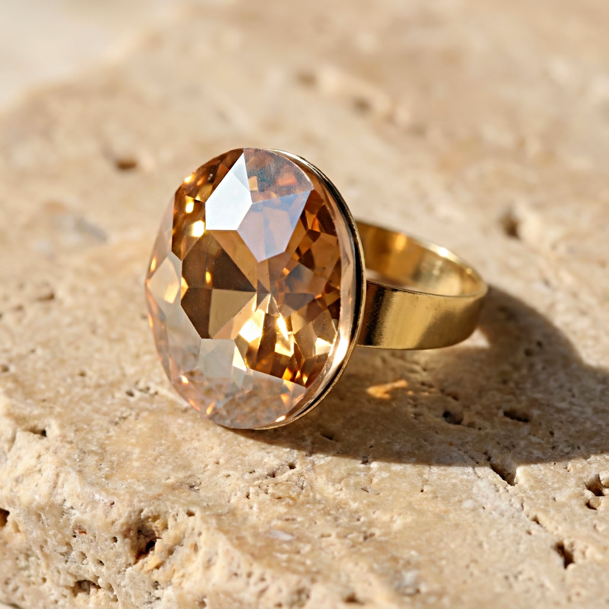 This magnificent cocktail ring boasts a big spherical crystal at its center, designed to capture attention with its radiant brilliance and timeless appeal. The big stone is skillfully faceted to reflect as much light as possible, producing a brilliant shine from all sides. Its smooth, polished band ensures a comfortable fit for all day wear while adding elegance. This ring gives an opulent touch to any ensemble, making it ideal for parties, festivities, or special occasions. It adds effortless glamor to your look whether it's worn with evening gowns or contemporary fusion clothing. It is designed to give you a sense of confidence and style while being lightweight and powerful. For people who appreciate jewelry that stands out with elegance and sophistication, this statement piece is perfect.