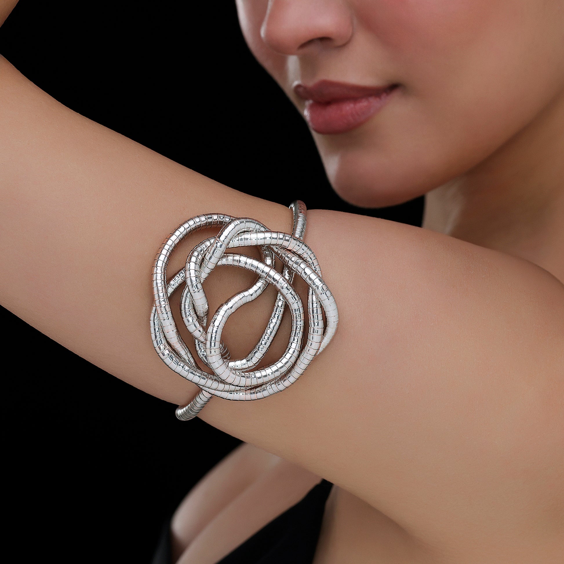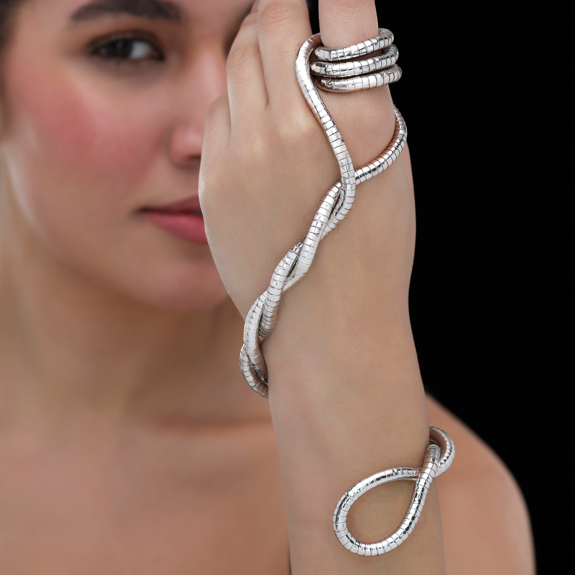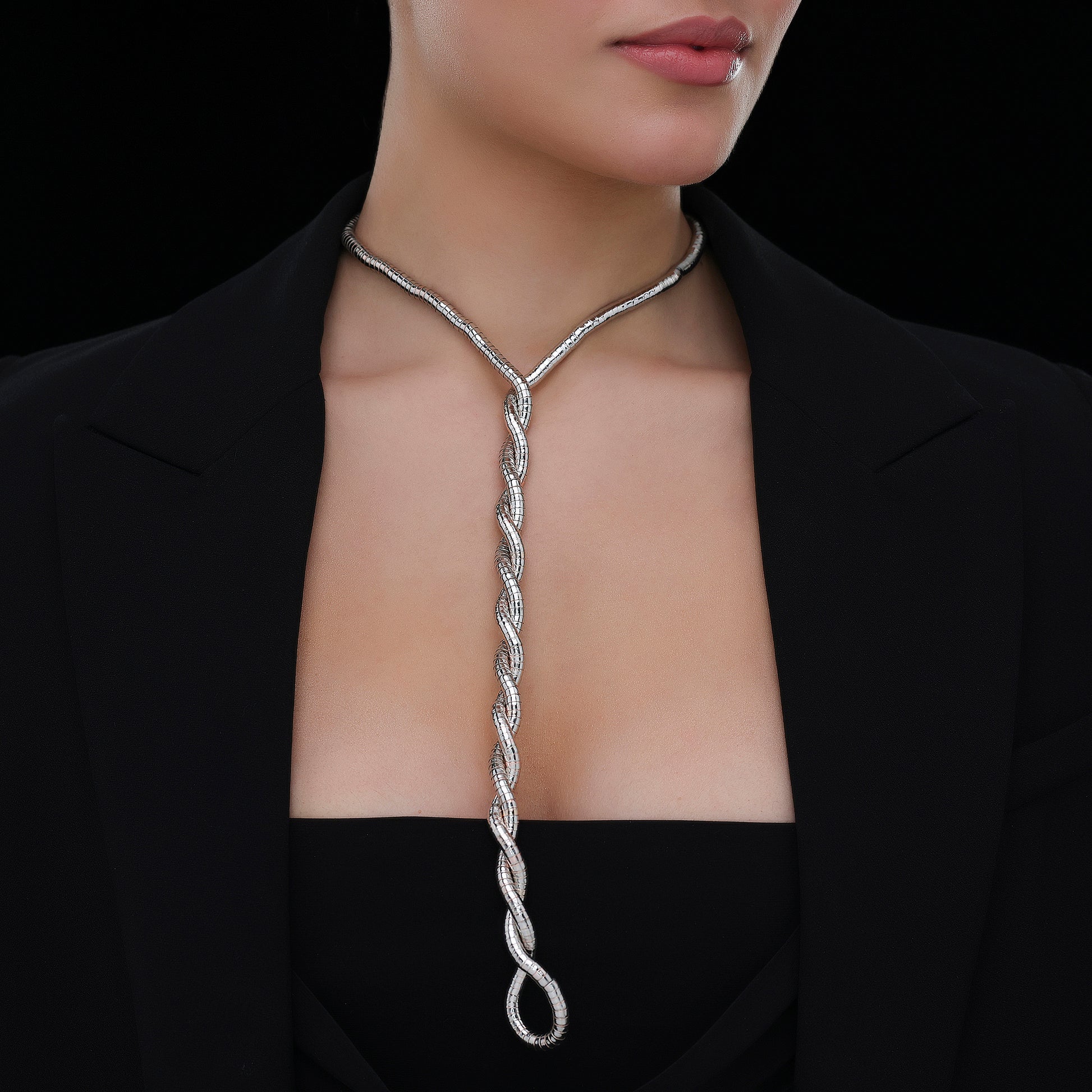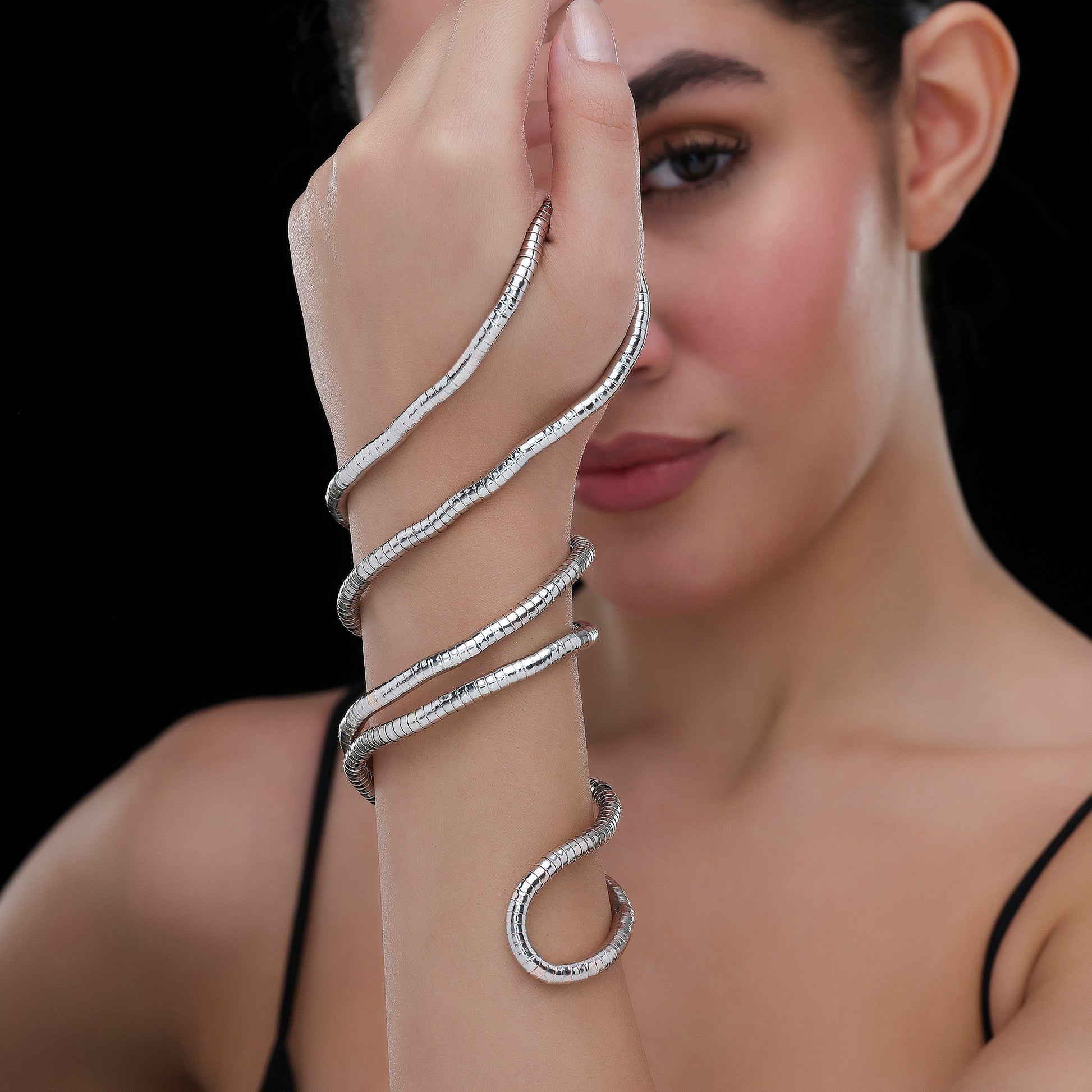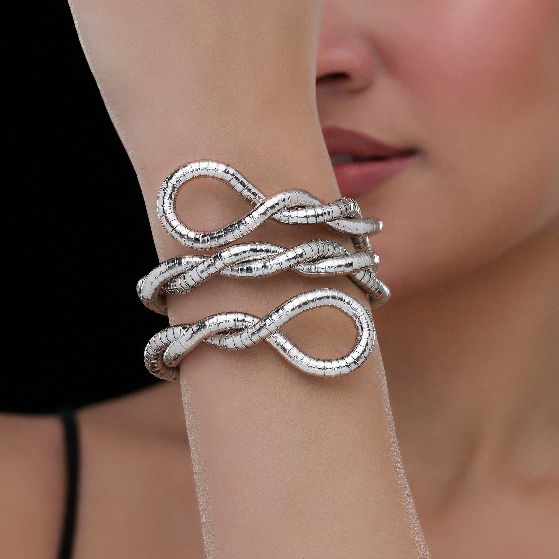 This bending silver necklace allows you to shape it as you choose and is made for effortless style and limitless imagination. You may experiment with different designs with a single item because to its robust, flexible structure, which bends gently to create custom forms. It looks well with both casual and evening attire thanks to its sleek silver finish, which gives it a sophisticated, contemporary sheen. Its flexible form allows it to be worn as a choker, mid-length necklace, or creative wrap-around piece, and its lightweight design guarantees comfort. This necklace stands out for its simple elegance and exceptional adaptability, making it a genuine statement necessity for people who value distinctive, versatile jewelry.