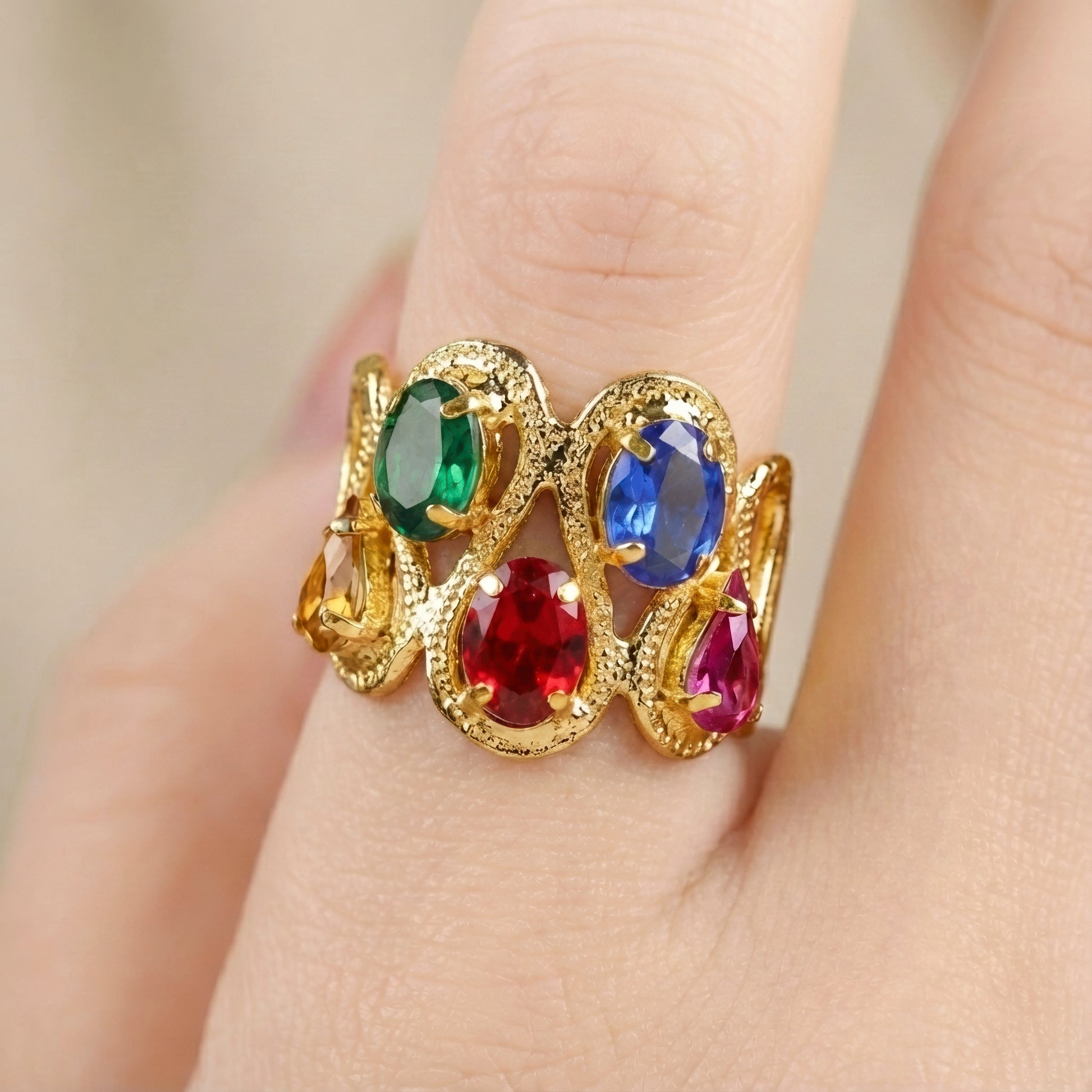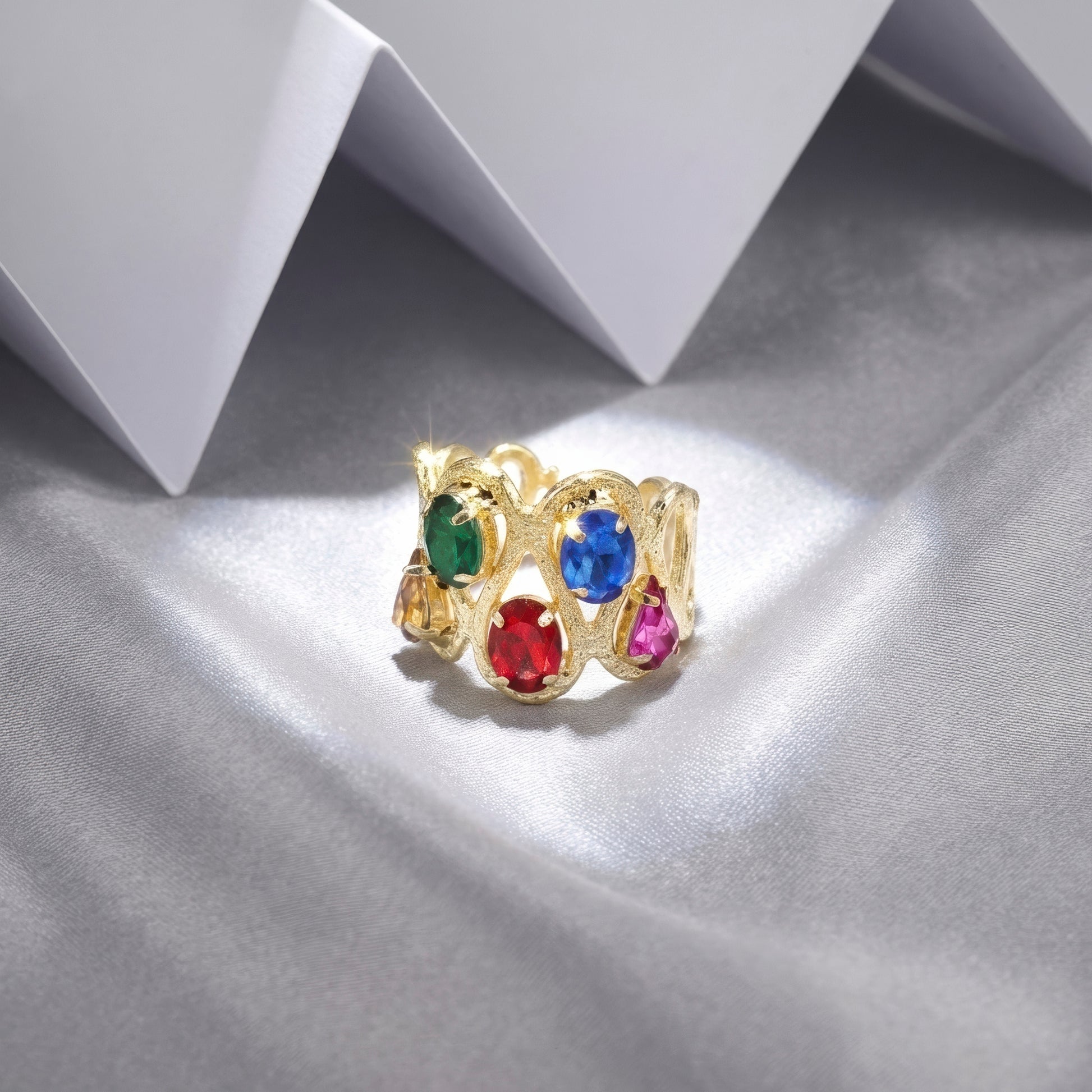 PRAO Ring Anti-Tarnish Wavy Crystals Band