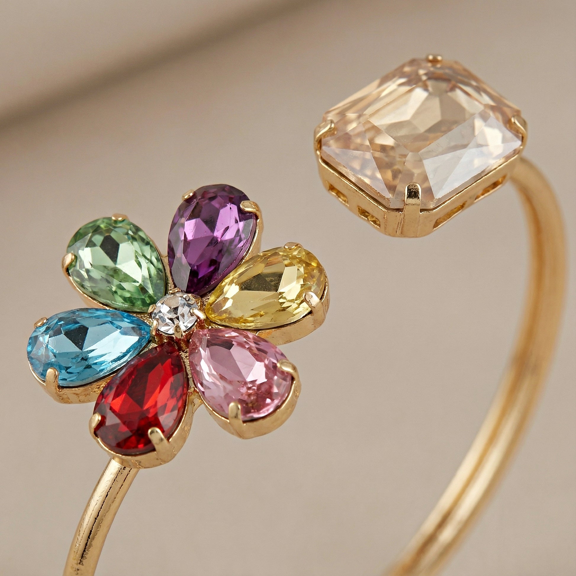 PRAO Bracelet Anti-Tarnish Multicolor Flower Crystal Bangle