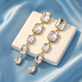 PRAO Earrings Anti-Tarnish Emerald-Shaped Crystal Dangle