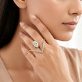 This striking ring features a sophisticated invisible setting that draws attention to a gorgeously formed pear stone for a polished, seamless appearance. The brilliance and depth of the design are enhanced by the thoughtfully placed stones, which give the impression of a single, perfect surface. The robust structure makes it a truly striking item, while the pear form gives a delicate and feminine touch. It lays effortlessly on the finger and feels secure throughout use thanks to its comfort and confidence-boosting design. This ring goes well with ethnic, western, and fusion attire, making it ideal for parties, festive events, and special celebrations. It is the perfect option for people who enjoy eye-catching jewelry with a polished, opulent finish because of its sophisticated shine and contemporary appeal.