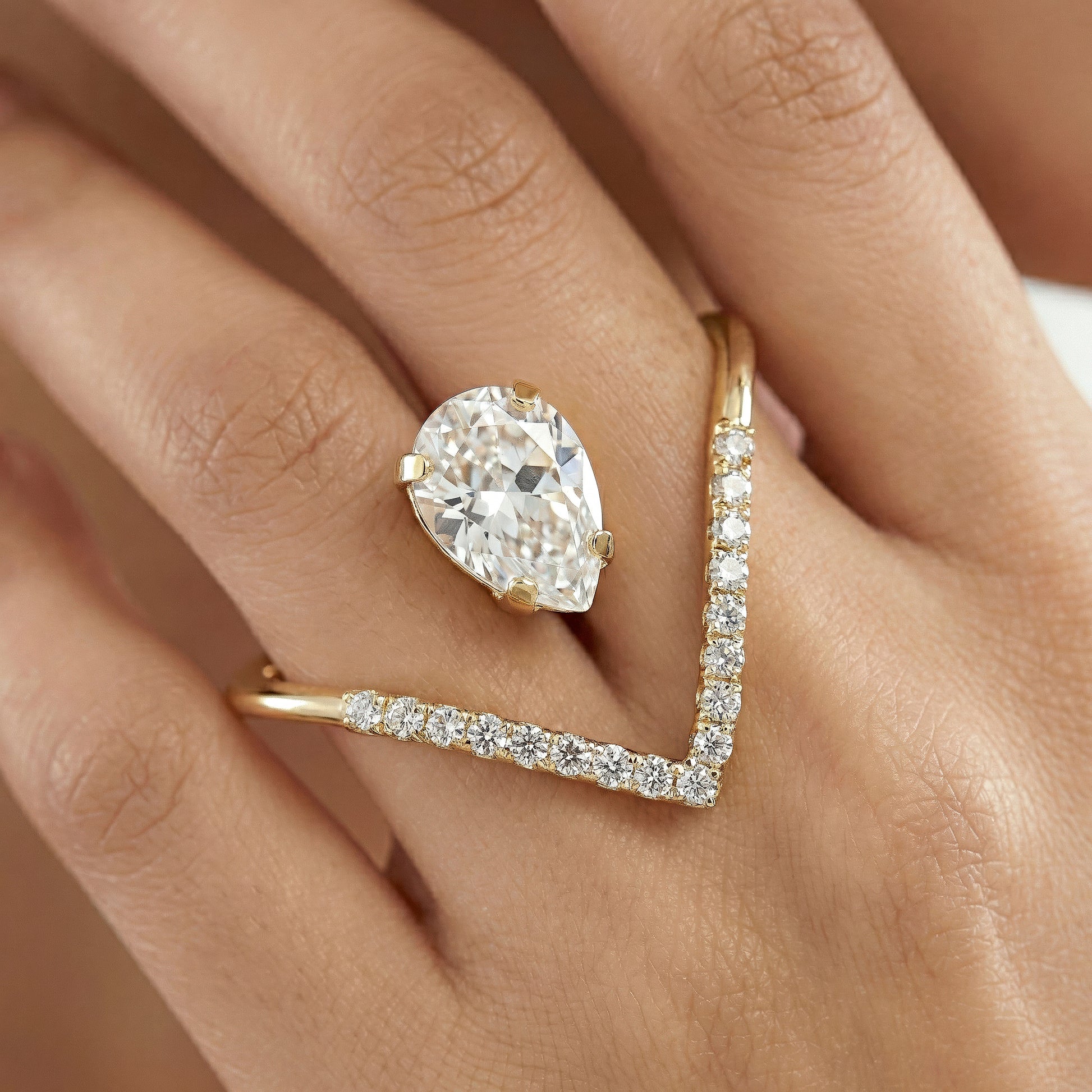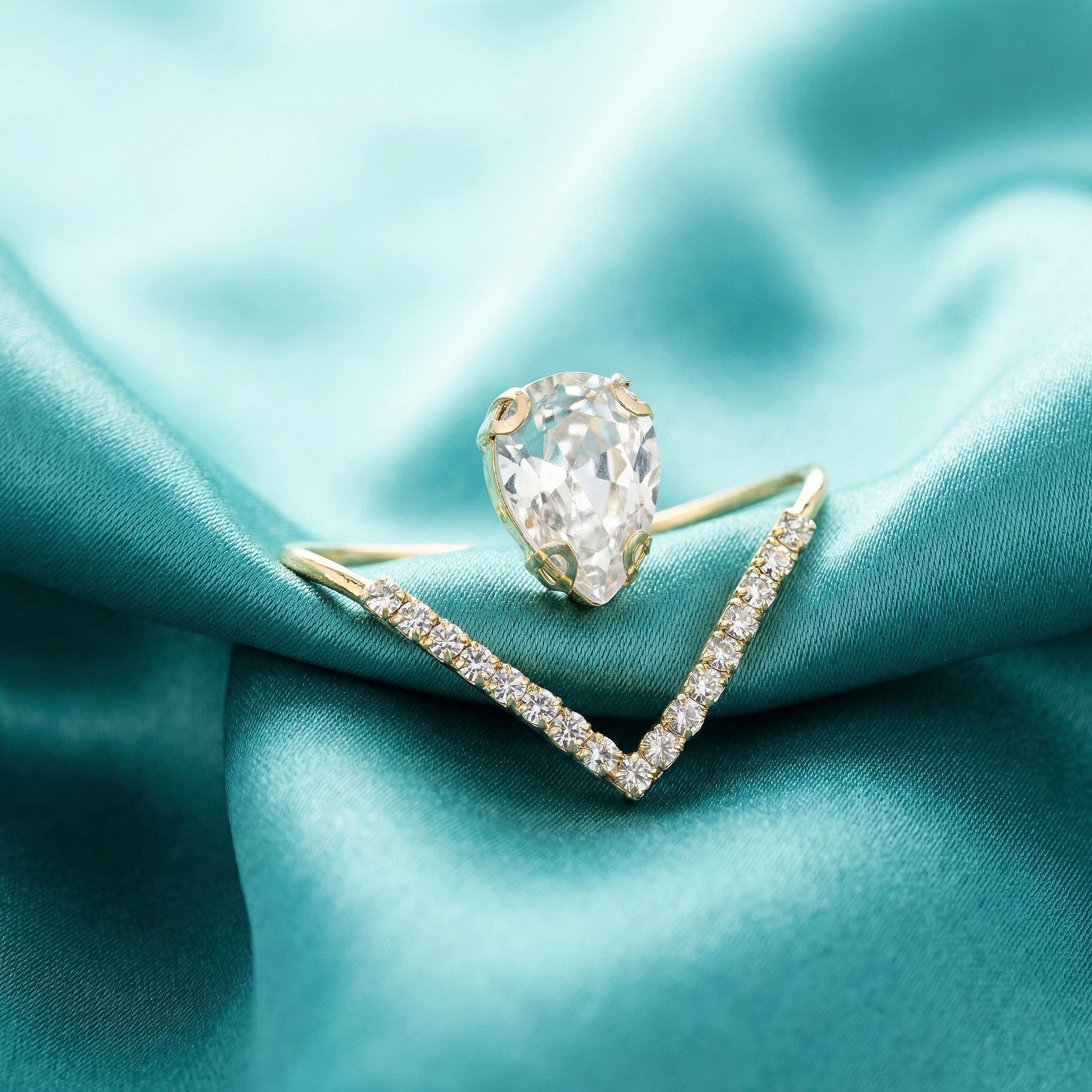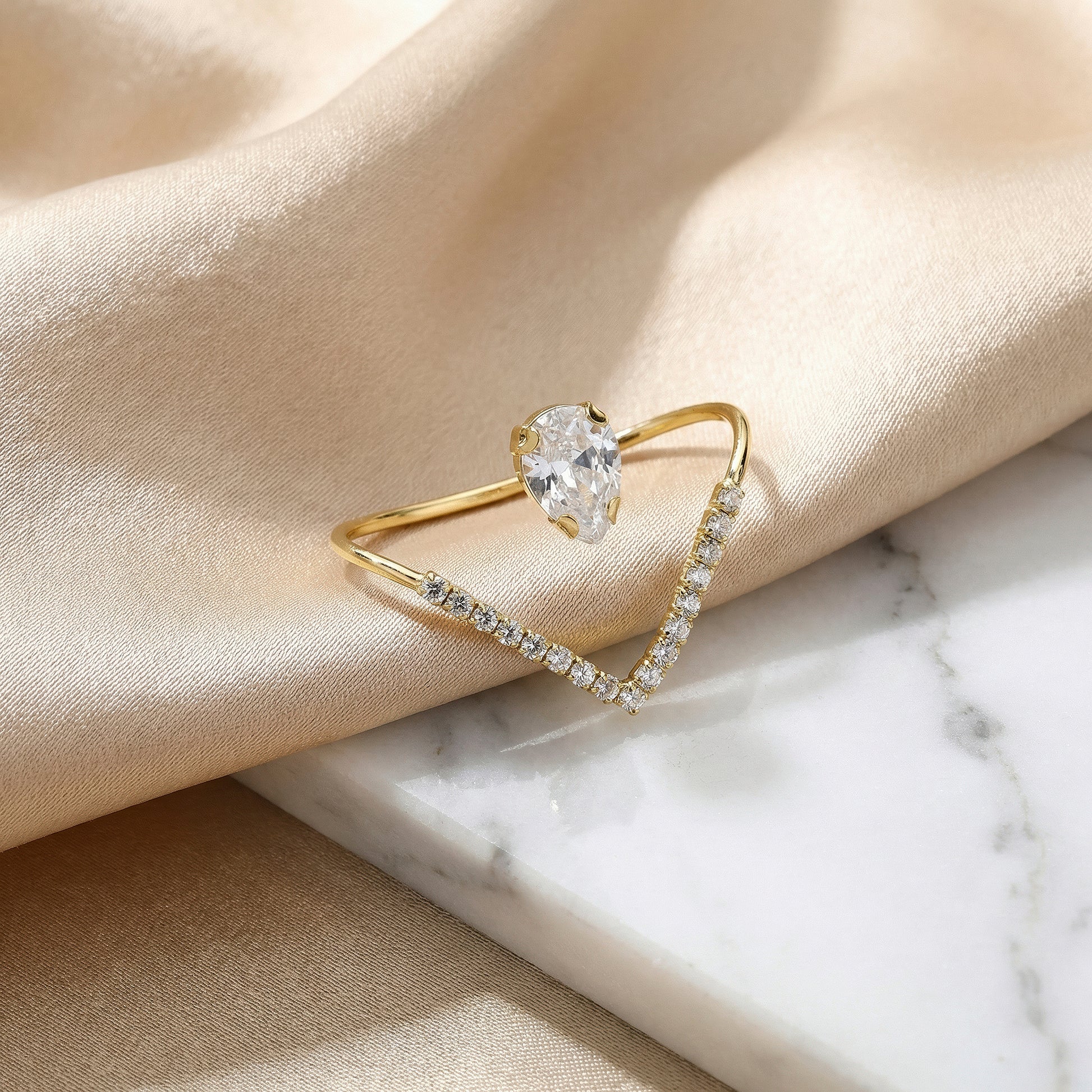 PRAO Ring Anti-Tarnish Invisible Pear Stone Statement