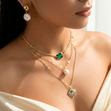 PRAO Necklace Anti-Tarnish Baguette Crystal Set With Earrings